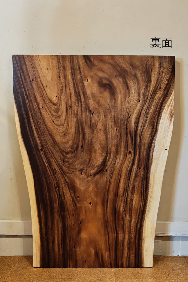 【材 質】モンキーポッド材 一枚板 テーブル用天板 【サイズ】幅 1685 mm × 奥行 750 mm 〜 850 mm × 厚 60 mm 【型 番】E631 【価 格】275,000円(税別) ※脚製作費/3万から8万円程度。デザイン・天板の大きさにより変わります。ご相談ください。