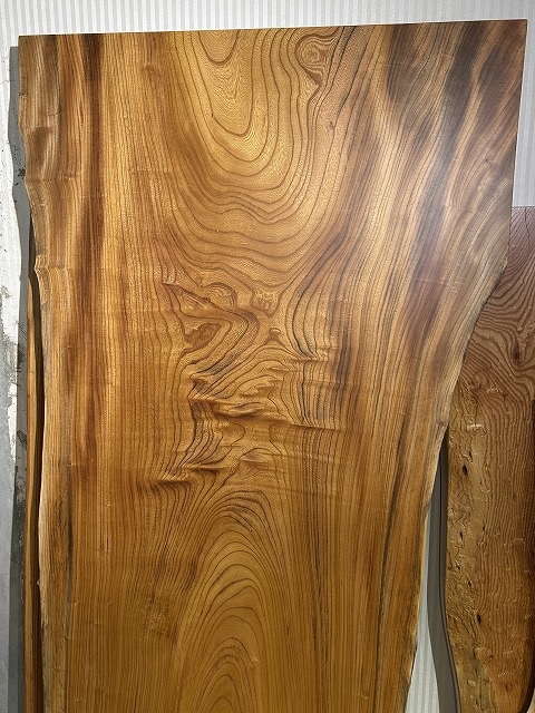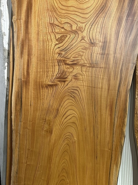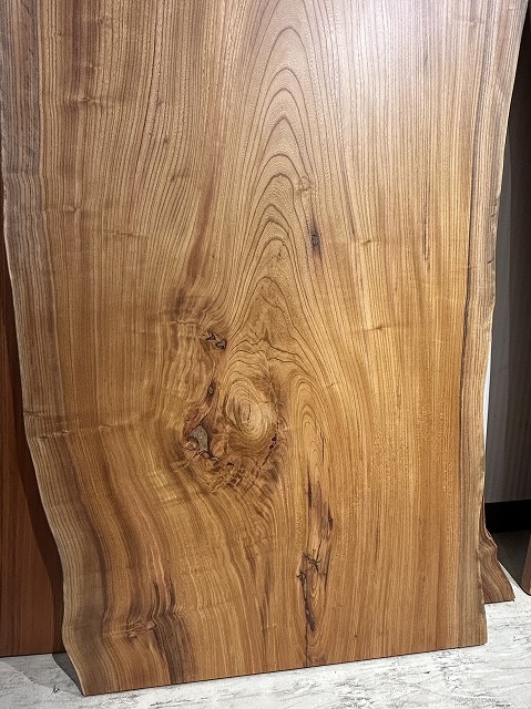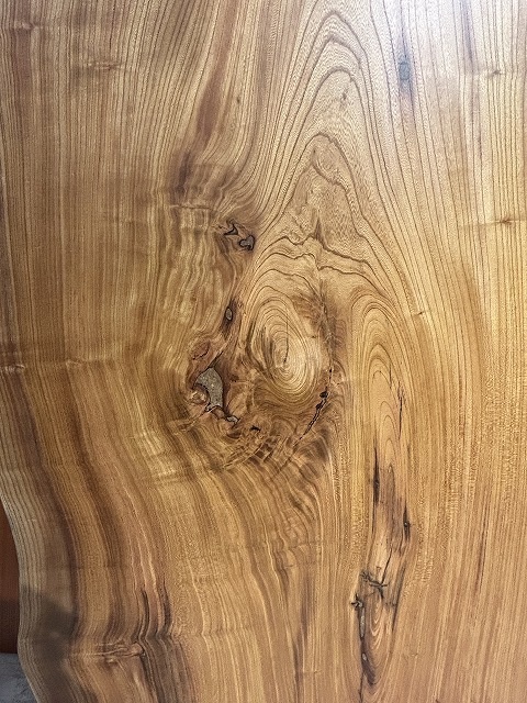 【材 質】欅(けやき)材 一枚板 テーブル用天板 セール 【サイズ】幅 2700 mm × 奥行 900 mm 〜 1180 mm × 厚 58 mm 【型 番】t946 【価 格】460,000円(税別) ※脚製作費/3万から8万円程度。デザイン・天板の大きさにより変わります。ご相談ください。