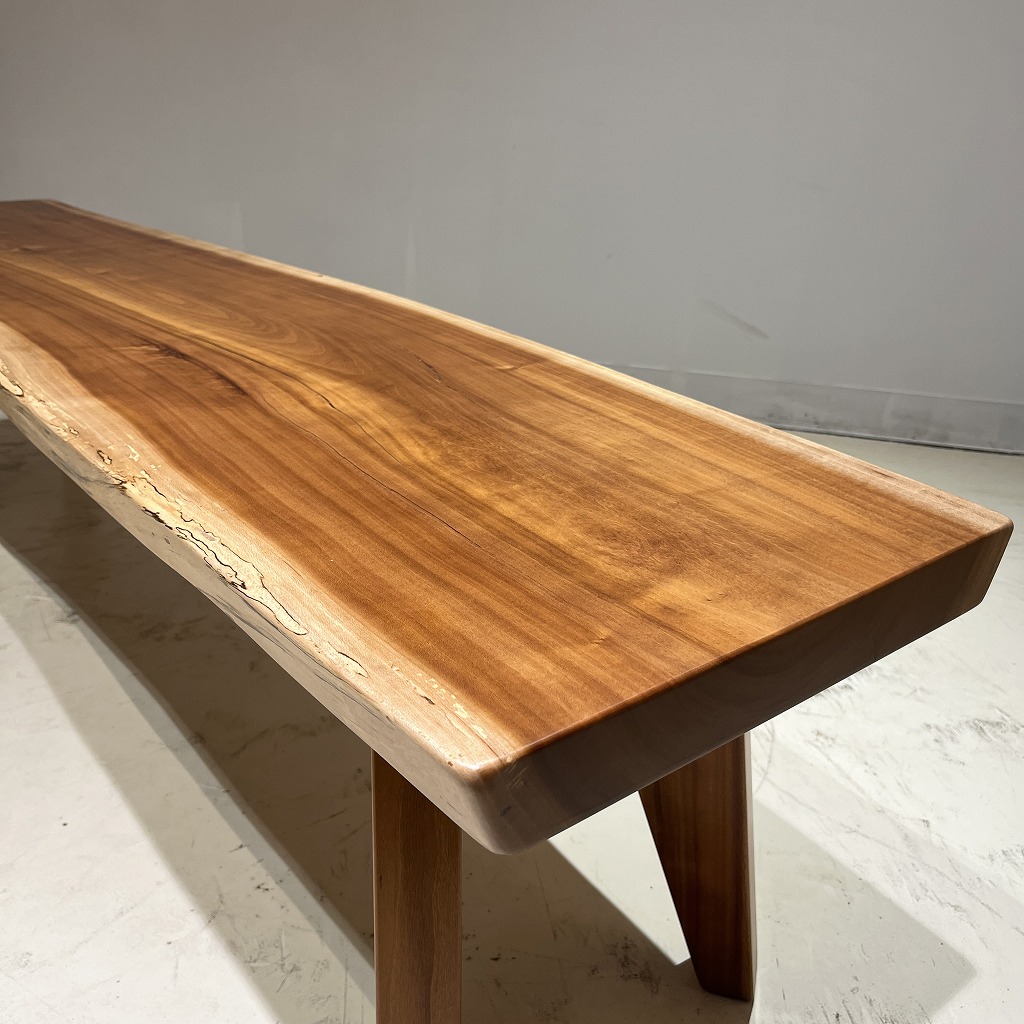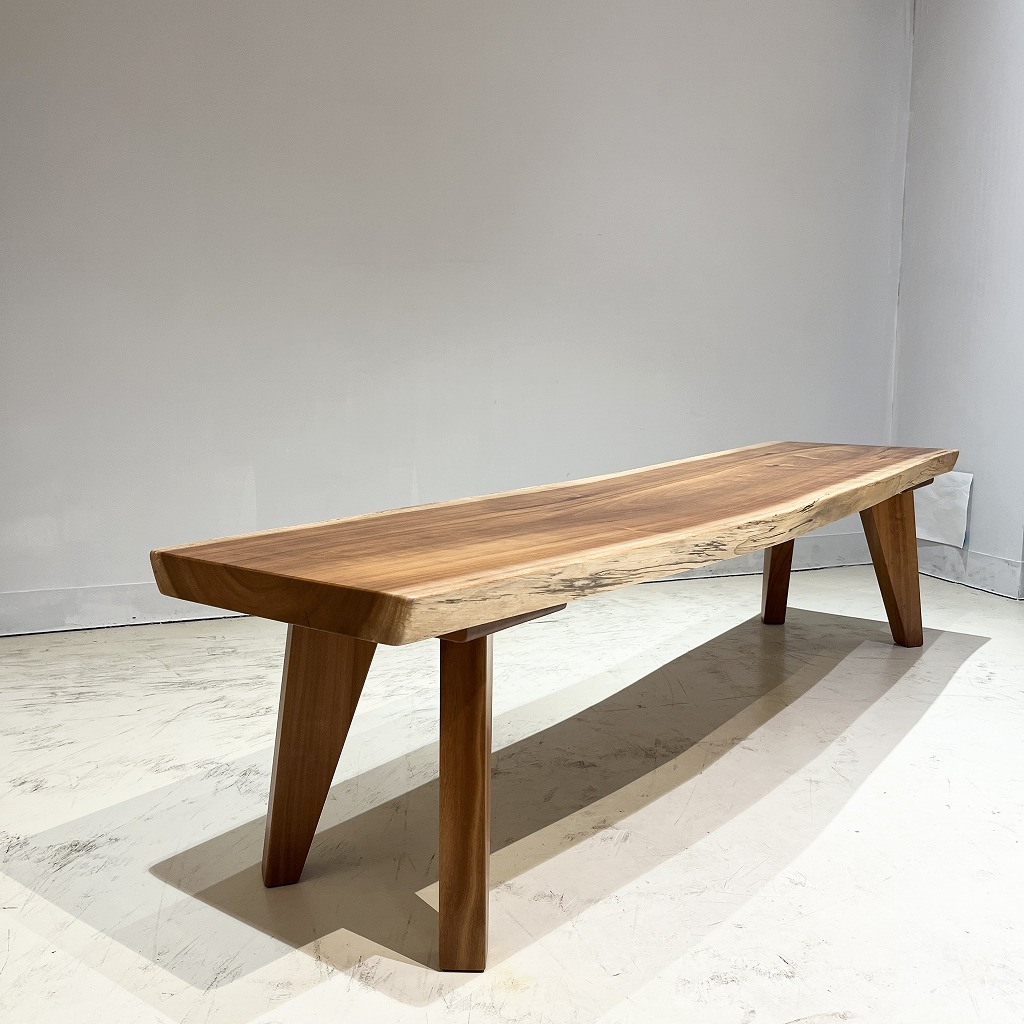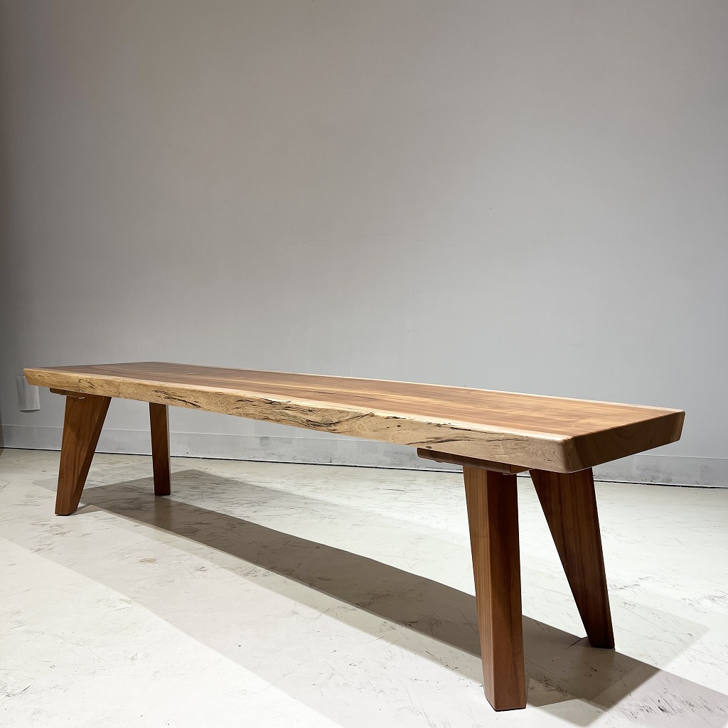 朱里桜(しゅりざくら)材 一枚板に木材の脚を組み合わせたベンチです。