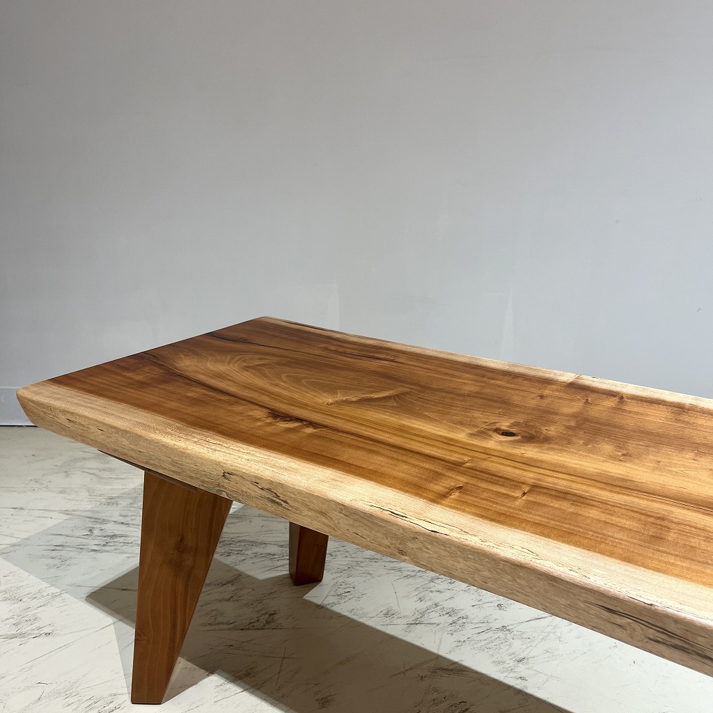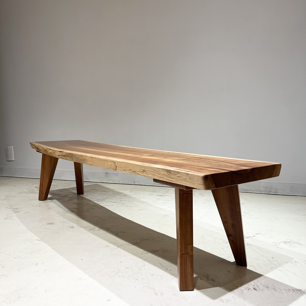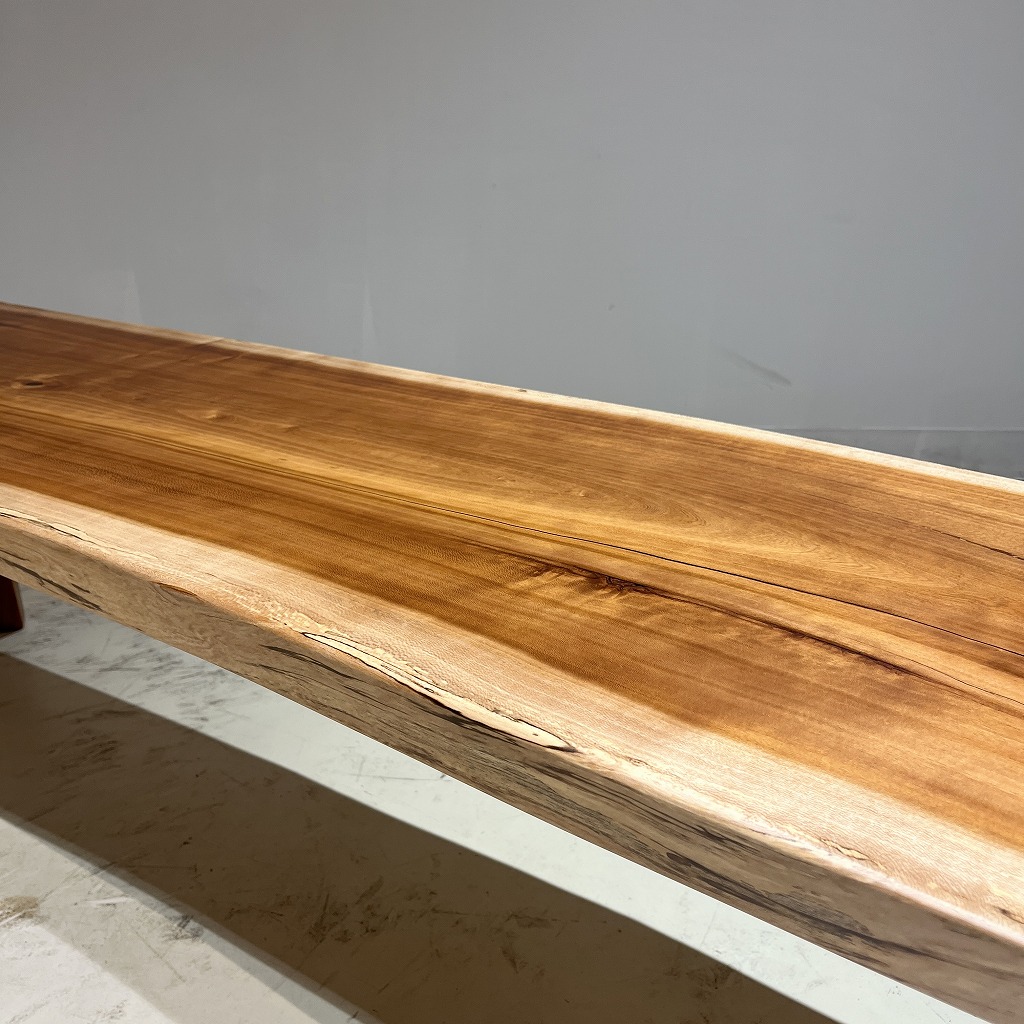 朱里桜(しゅりざくら)材 一枚板に木材の脚を組み合わせたベンチです。