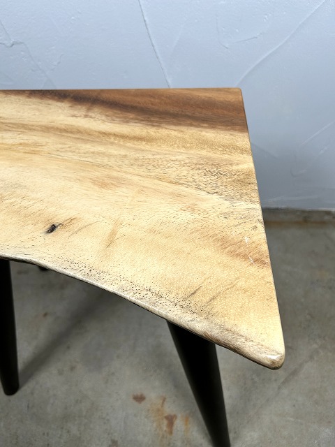【材 質】欅(けやき)材 一枚板 テーブル用天板 セール 【サイズ】幅 1820 mm × 奥行 940 mm 〜 760 mm × 厚 57 mm 【型 番】t969 【価 格】225,000円(税別) ※脚製作費/3万から8万円程度。デザイン・天板の大きさにより変わります。ご相談ください。