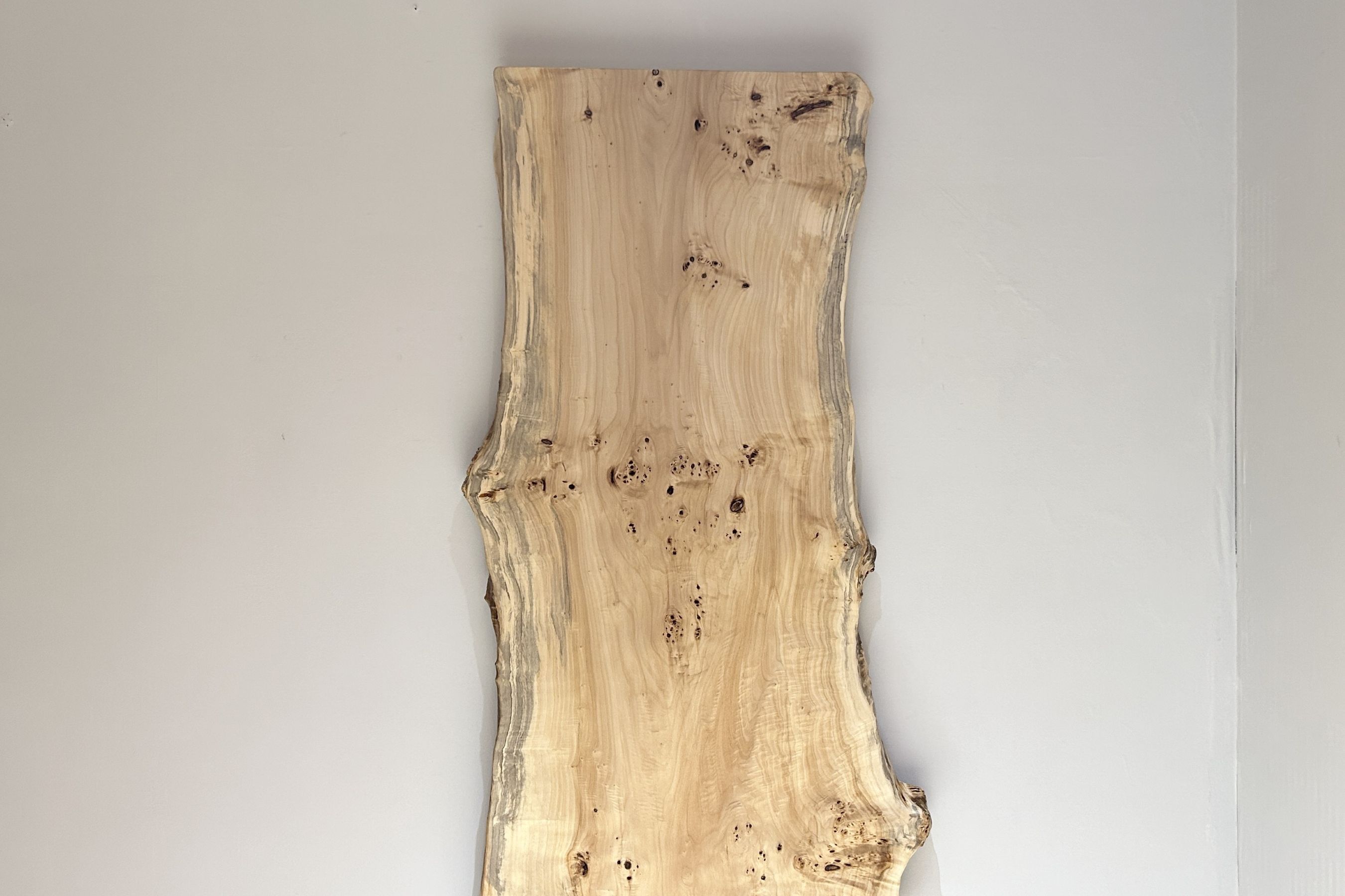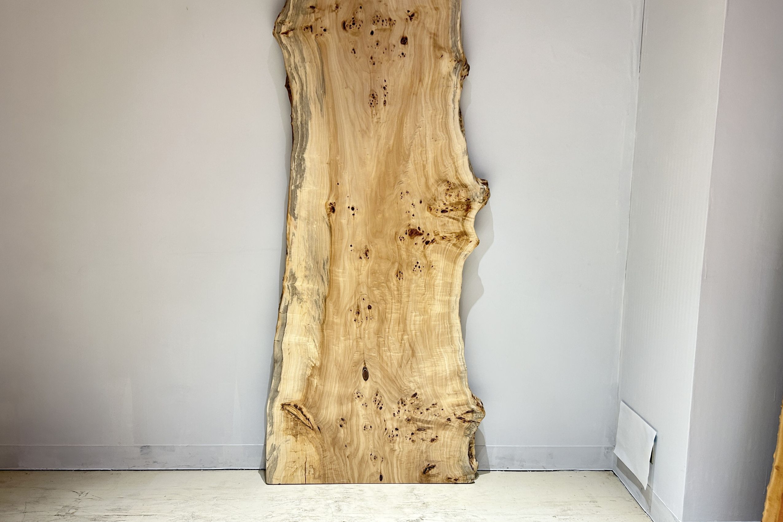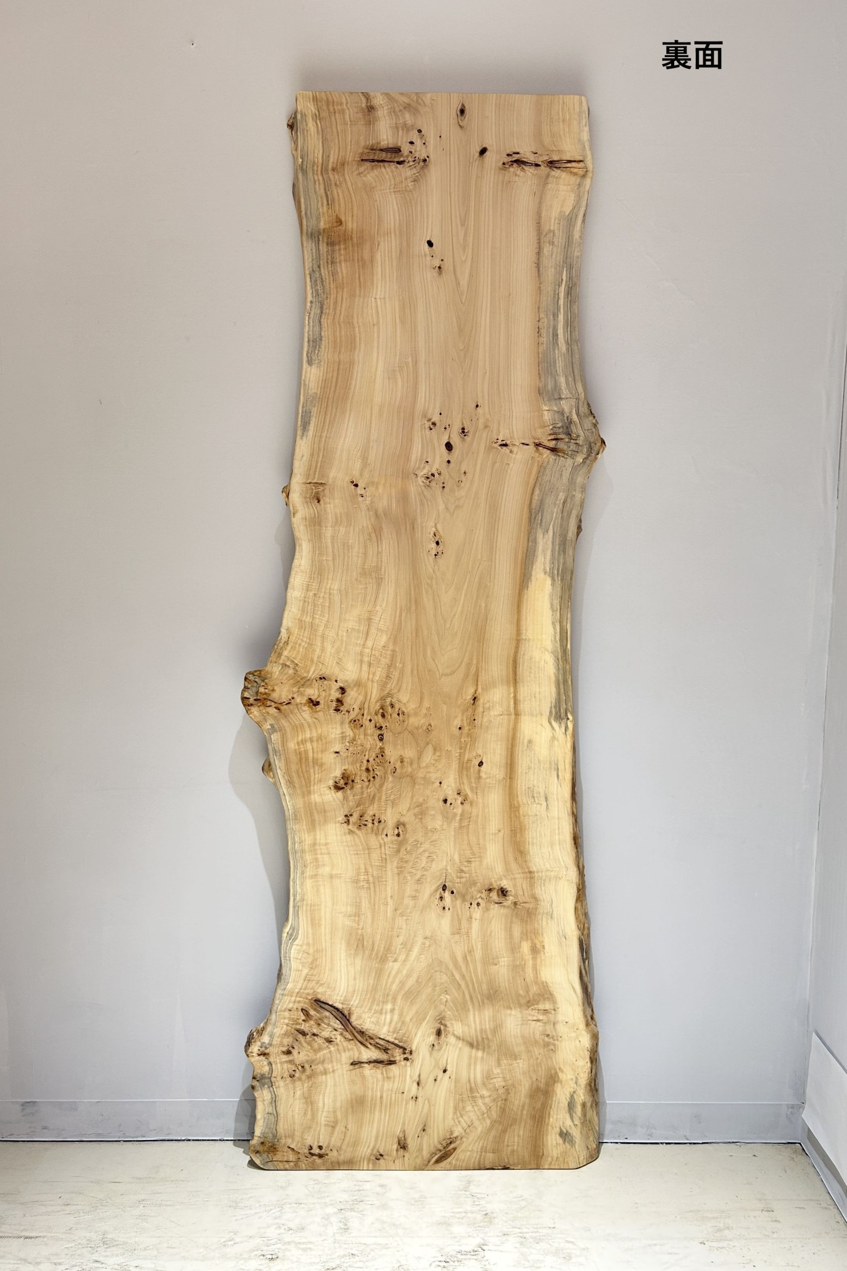 明るい木肌でコブ杢のある光沢の綺麗なポプラ材一枚板です。