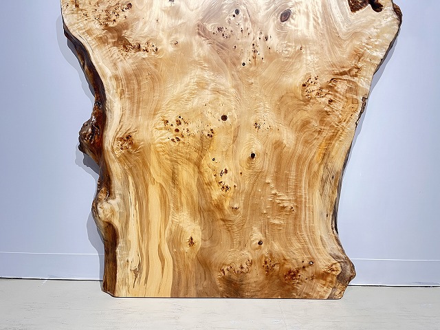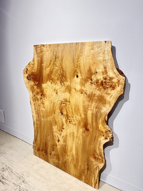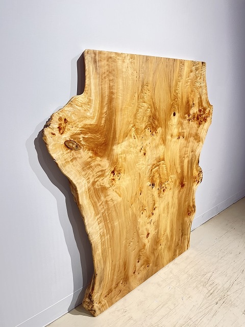 明るい木肌でコブ杢のある光沢の綺麗なポプラ材一枚板です。