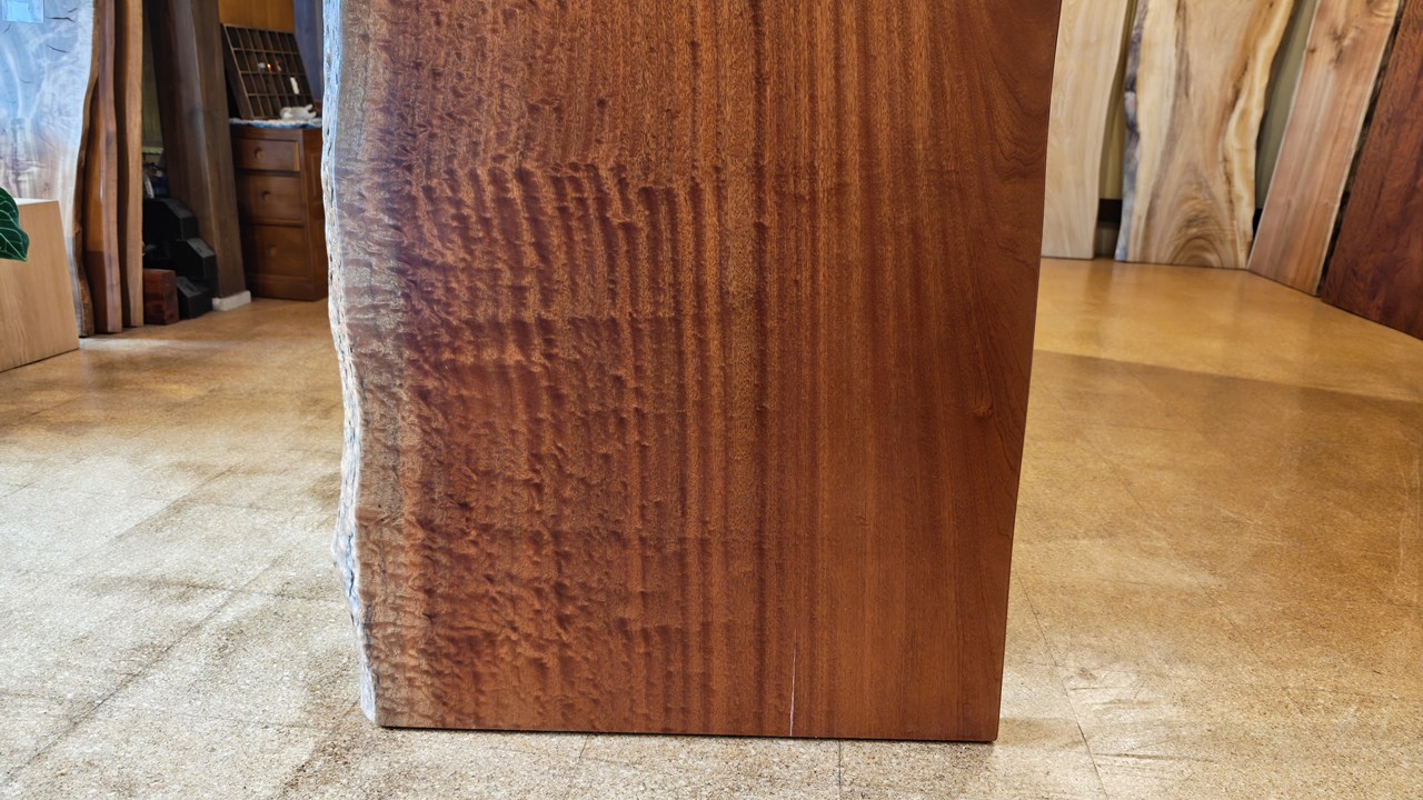少し赤みがかった重厚な色合いのサペリ材一枚板です。