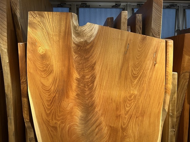 綺麗な色合いと木目の流れの欅材一枚板です。