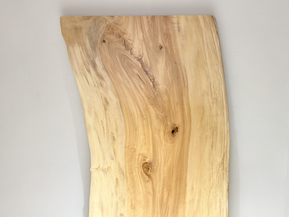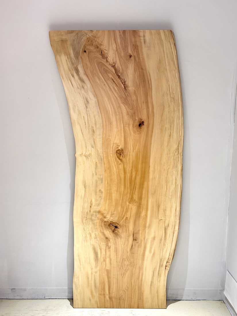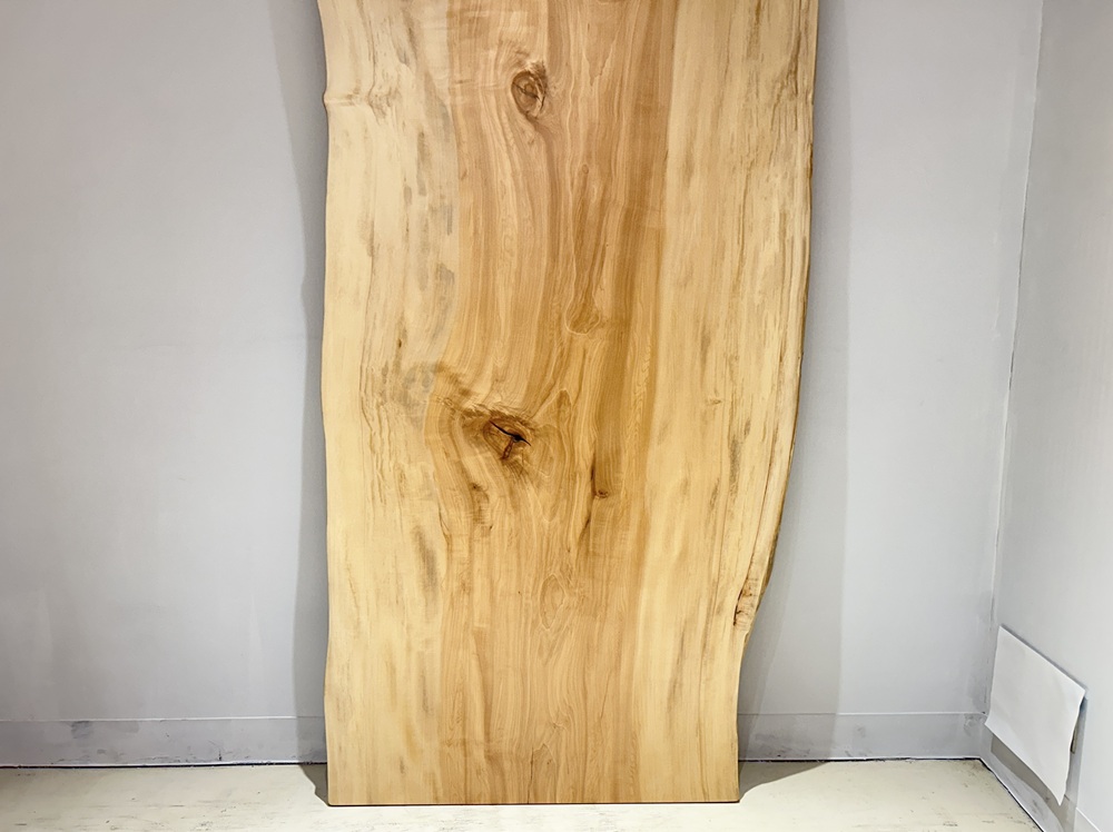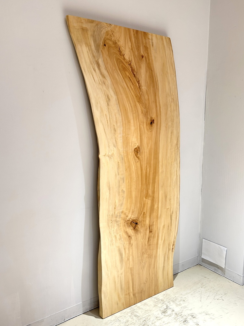 明るい色合いでグラデーションが綺麗な栃材一枚板です。