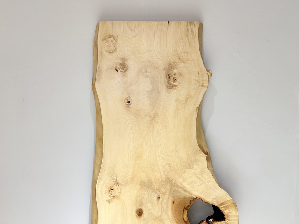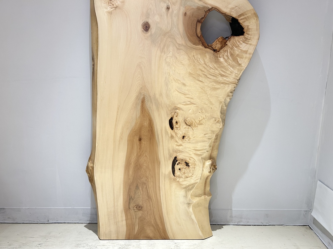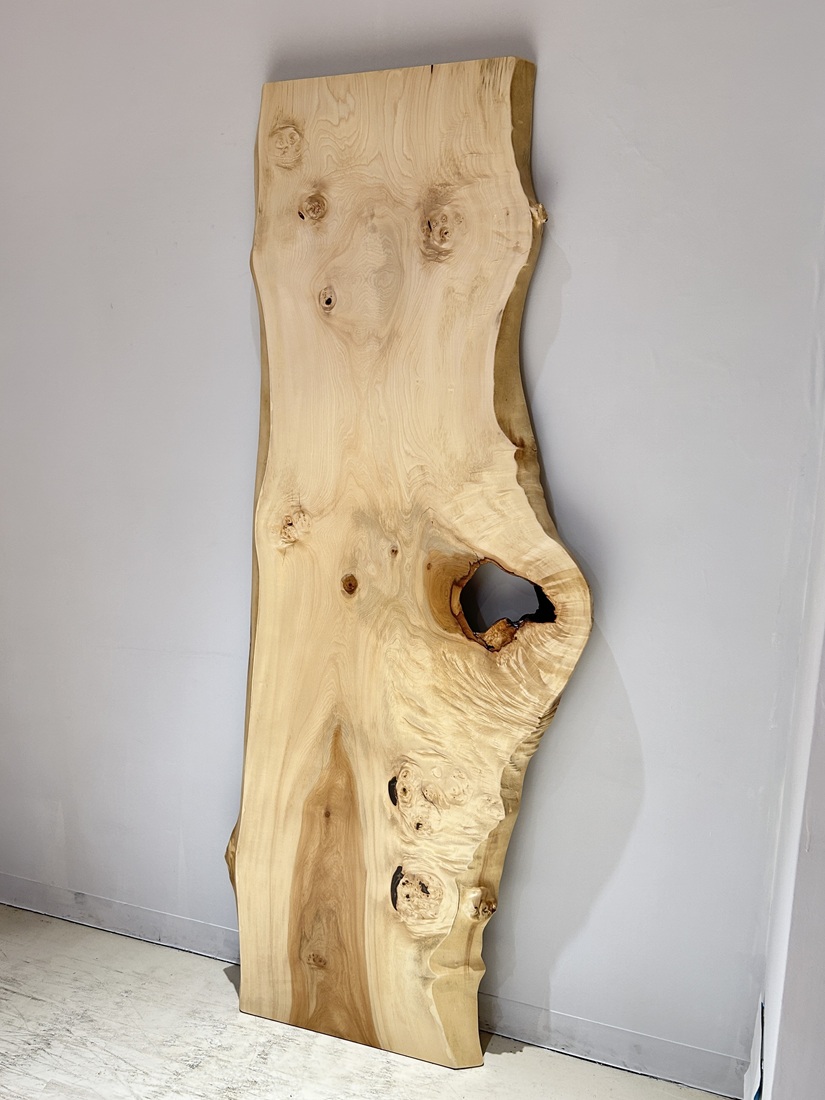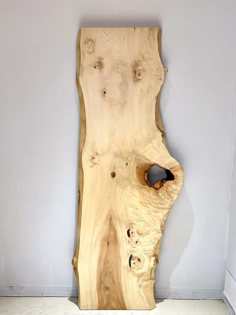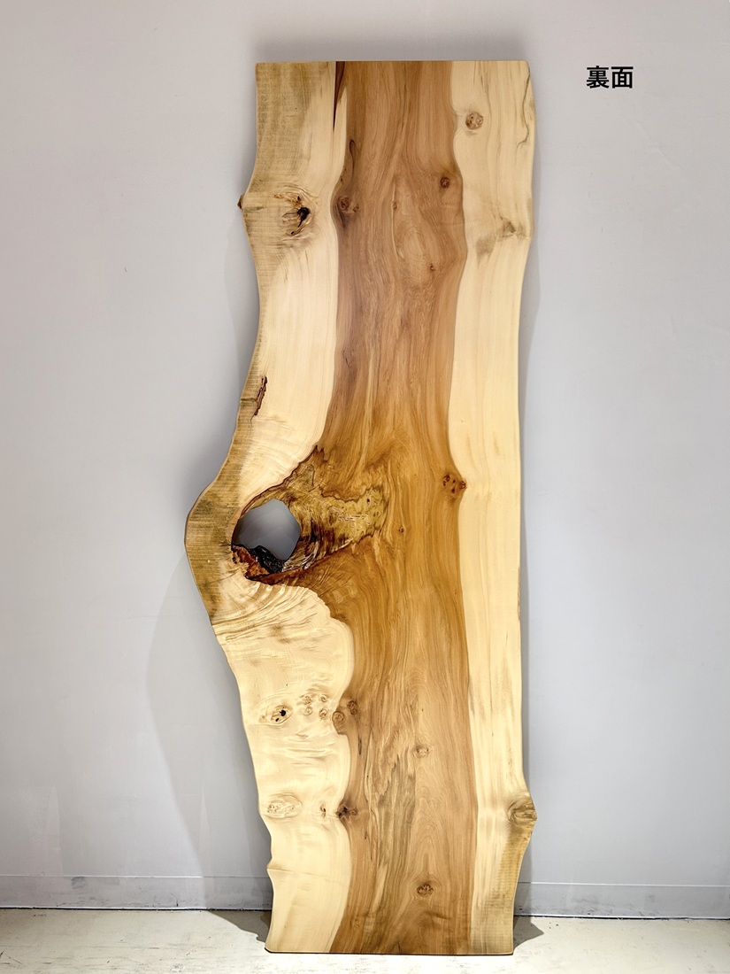 明るい色合いでグラデーションが綺麗な栃材一枚板です。