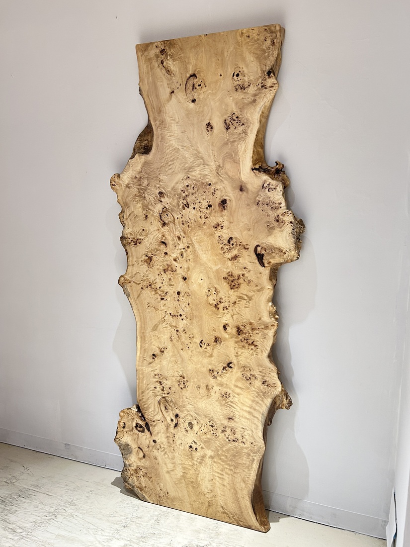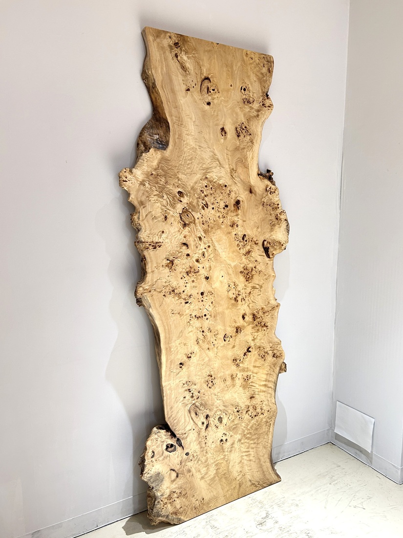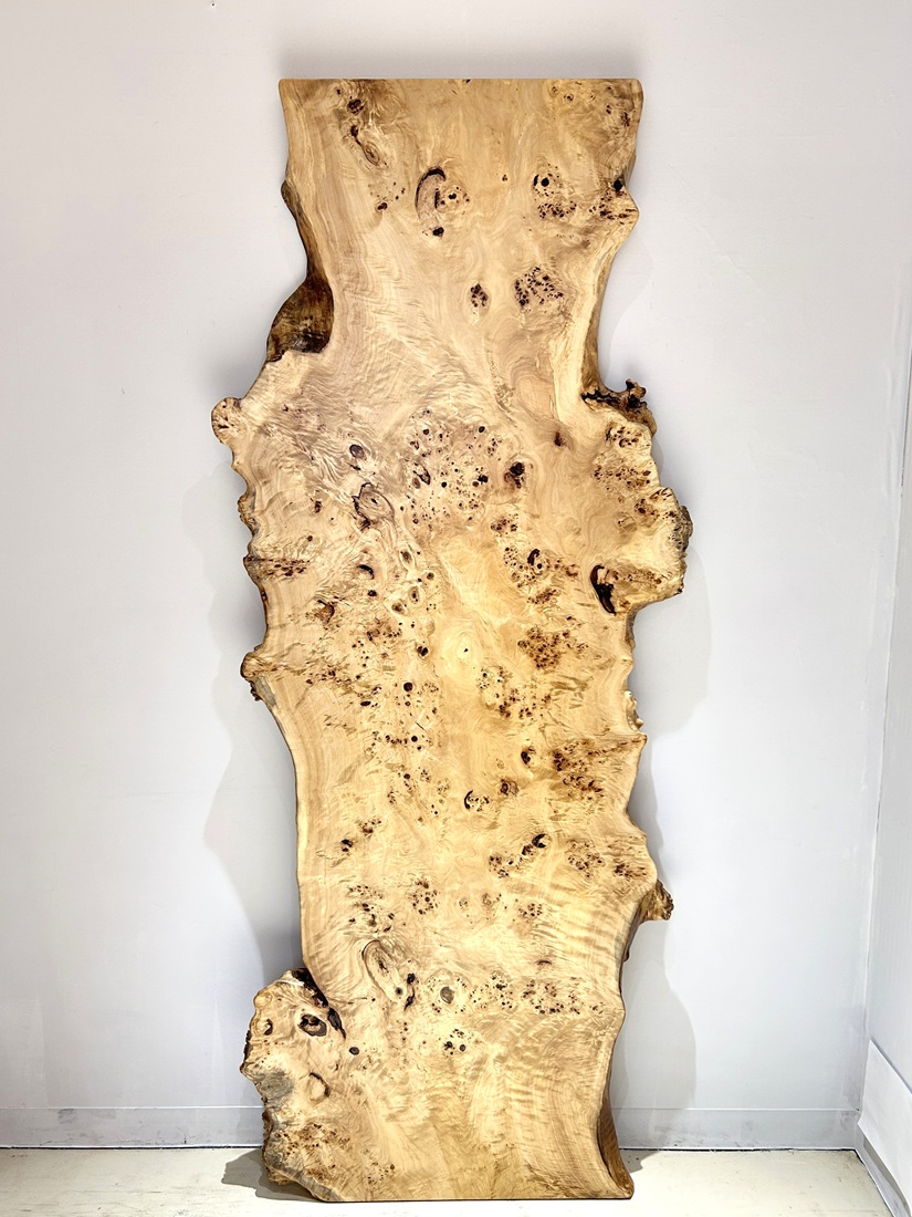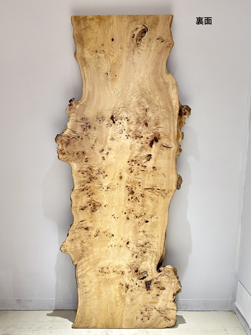 明るい木肌でコブ杢のある光沢の綺麗なポプラ材一枚板です。