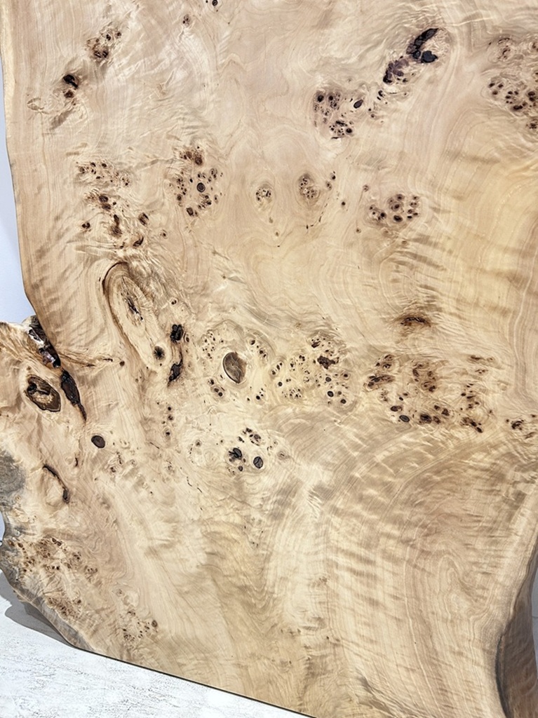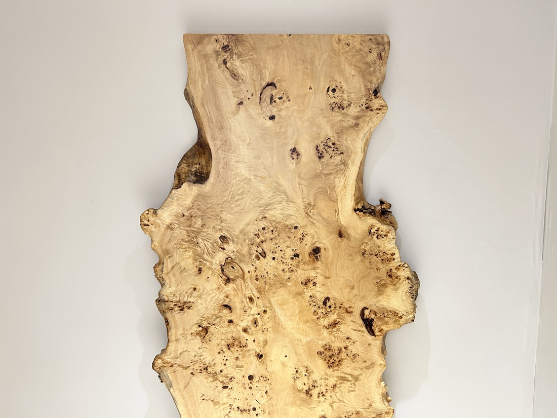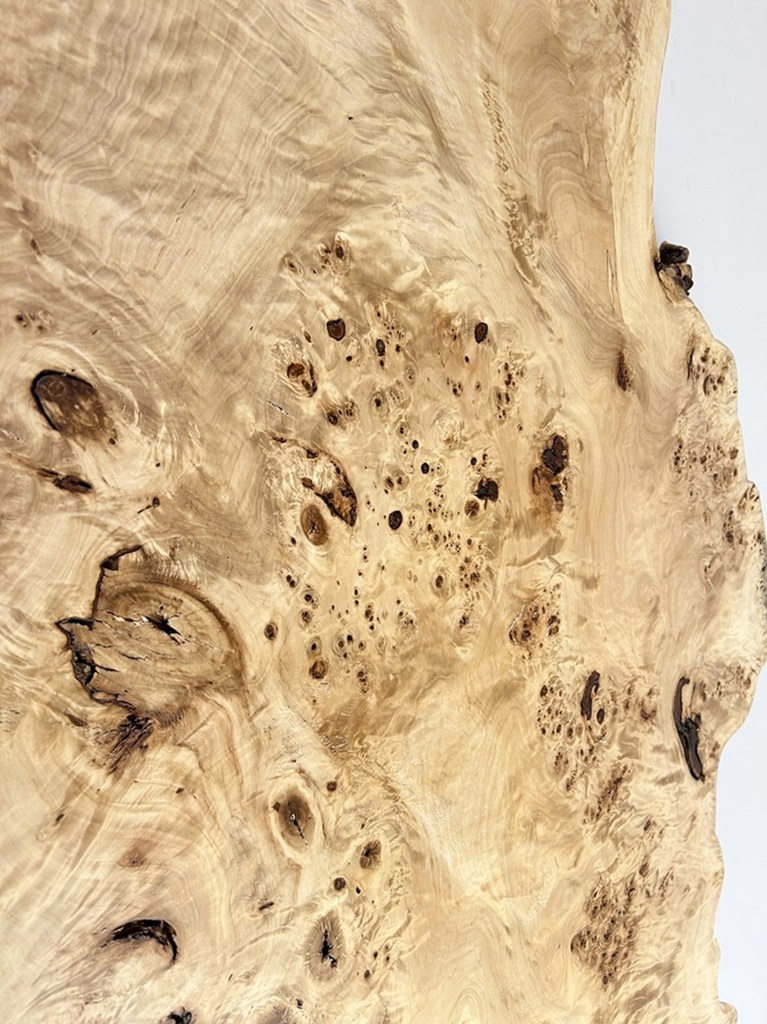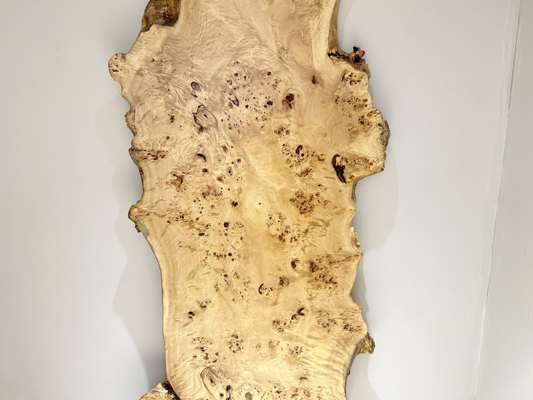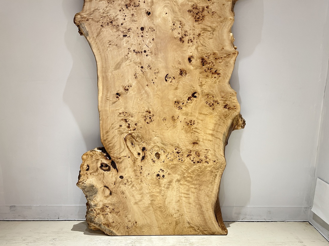 明るい木肌でコブ杢のある光沢の綺麗なポプラ材一枚板です。