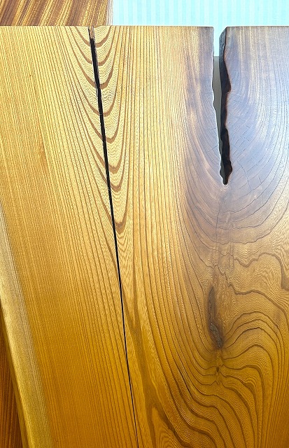 躍動感のある木目の流れで味わいあふれる欅材一枚板です。