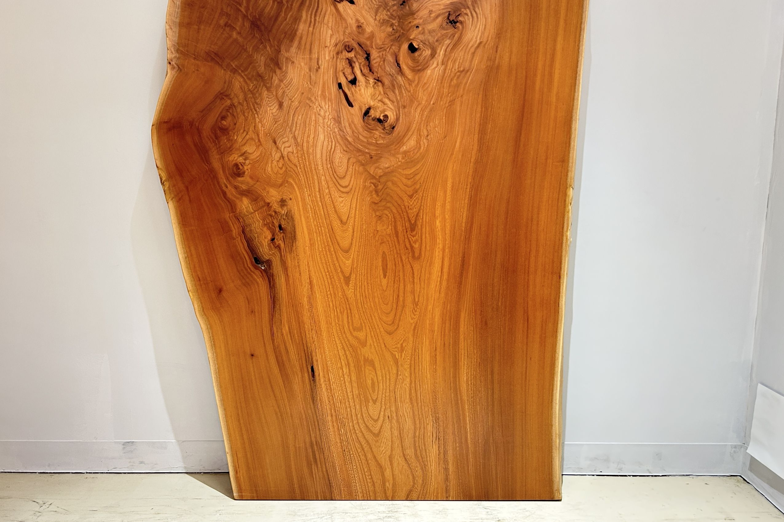 変化のある木目で、比較的深みのある色合いのグラデーションが綺麗な欅材一枚板です。