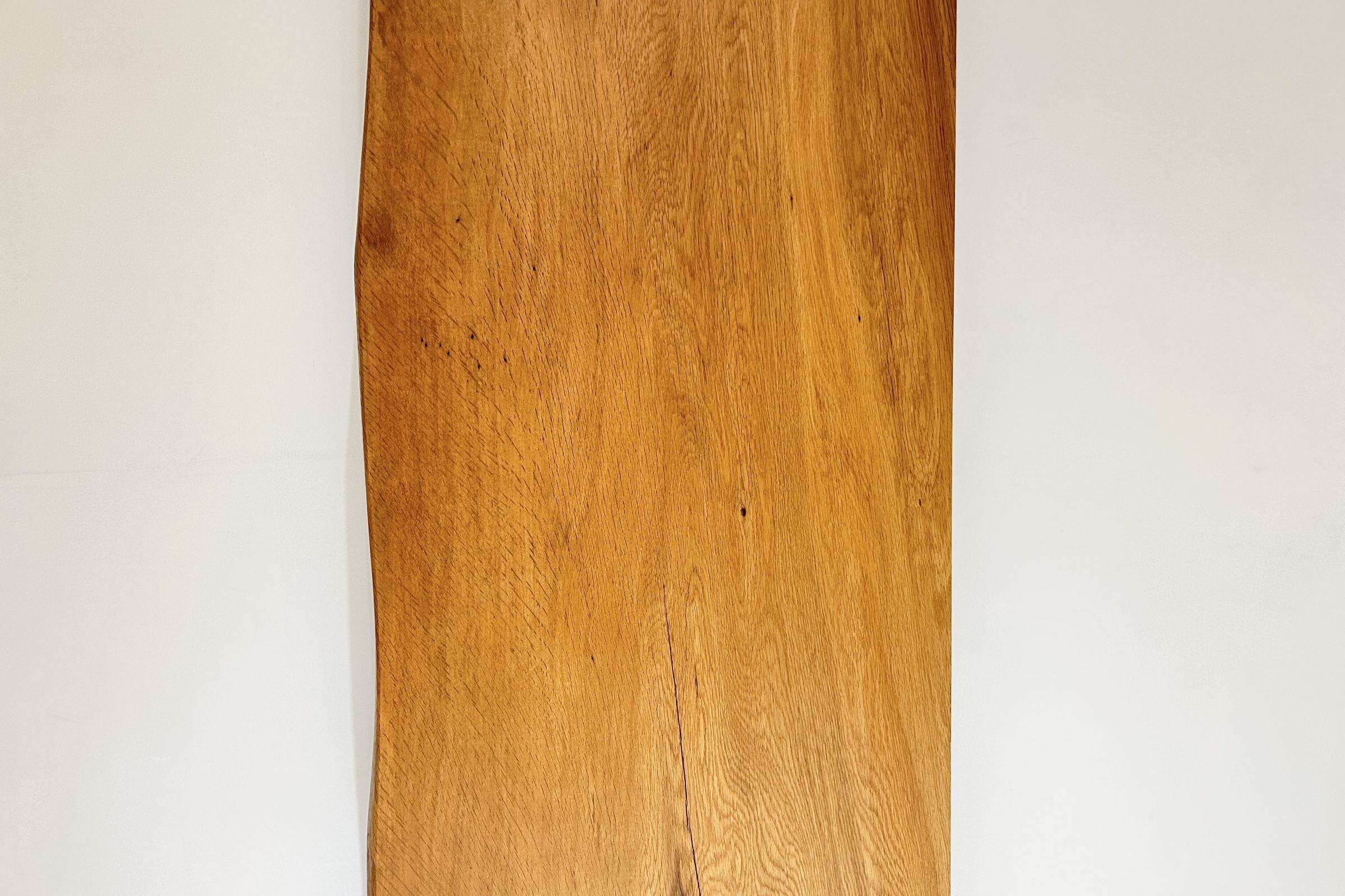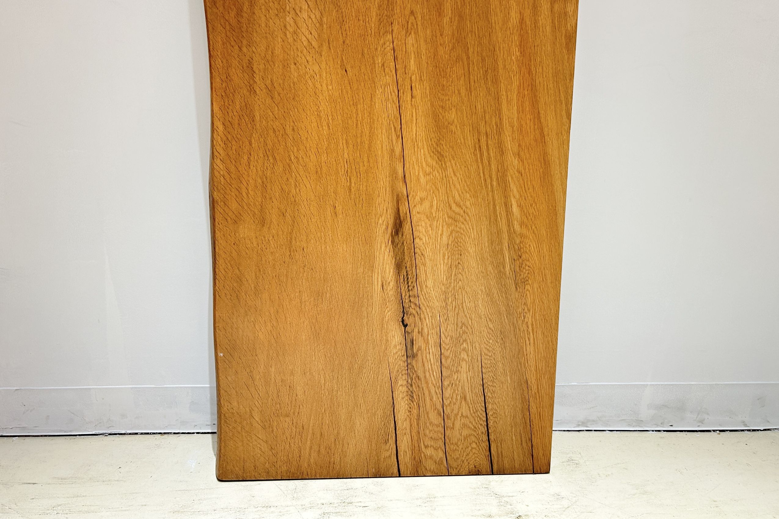 ナラ材としては比較的濃いめの色合いで、素朴でナチュラル感いっぱいの一枚板です。