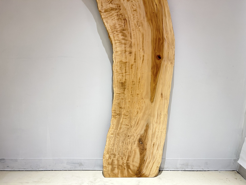 明るい色合いでグラデーションが綺麗な栃材一枚板です。