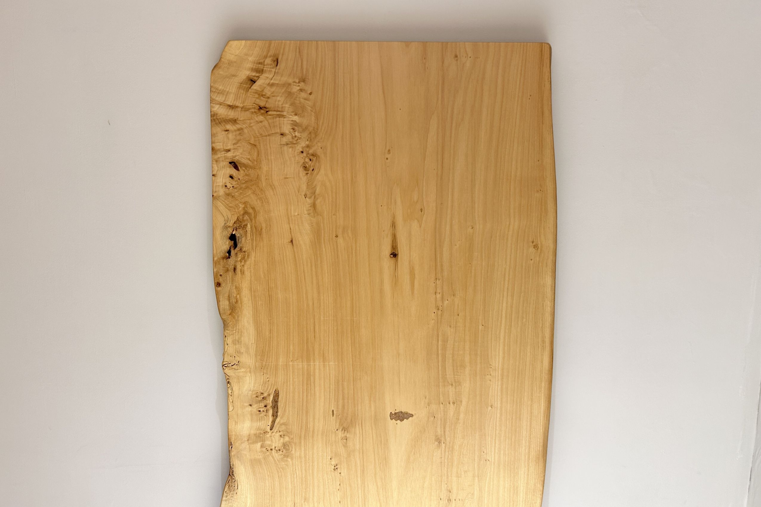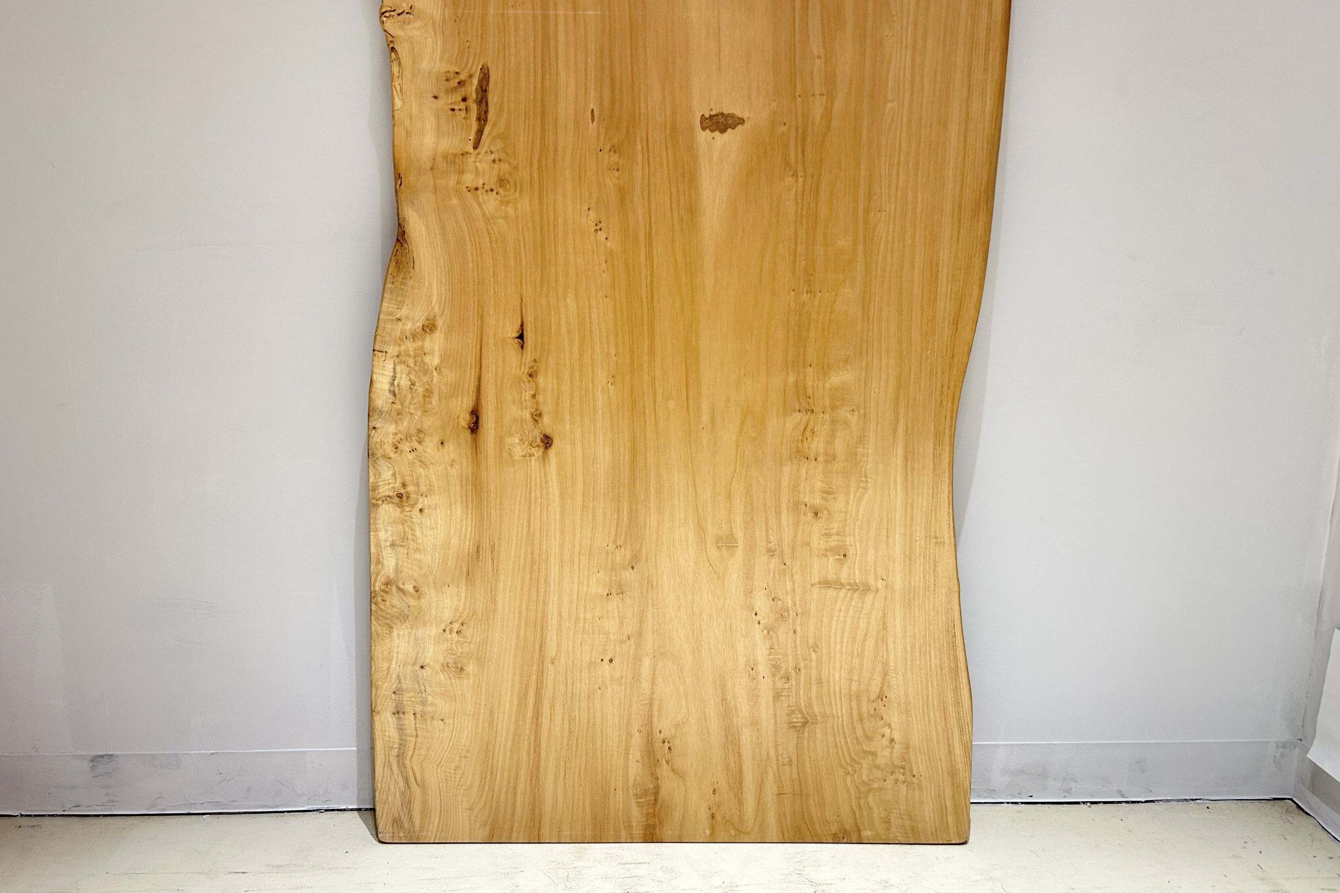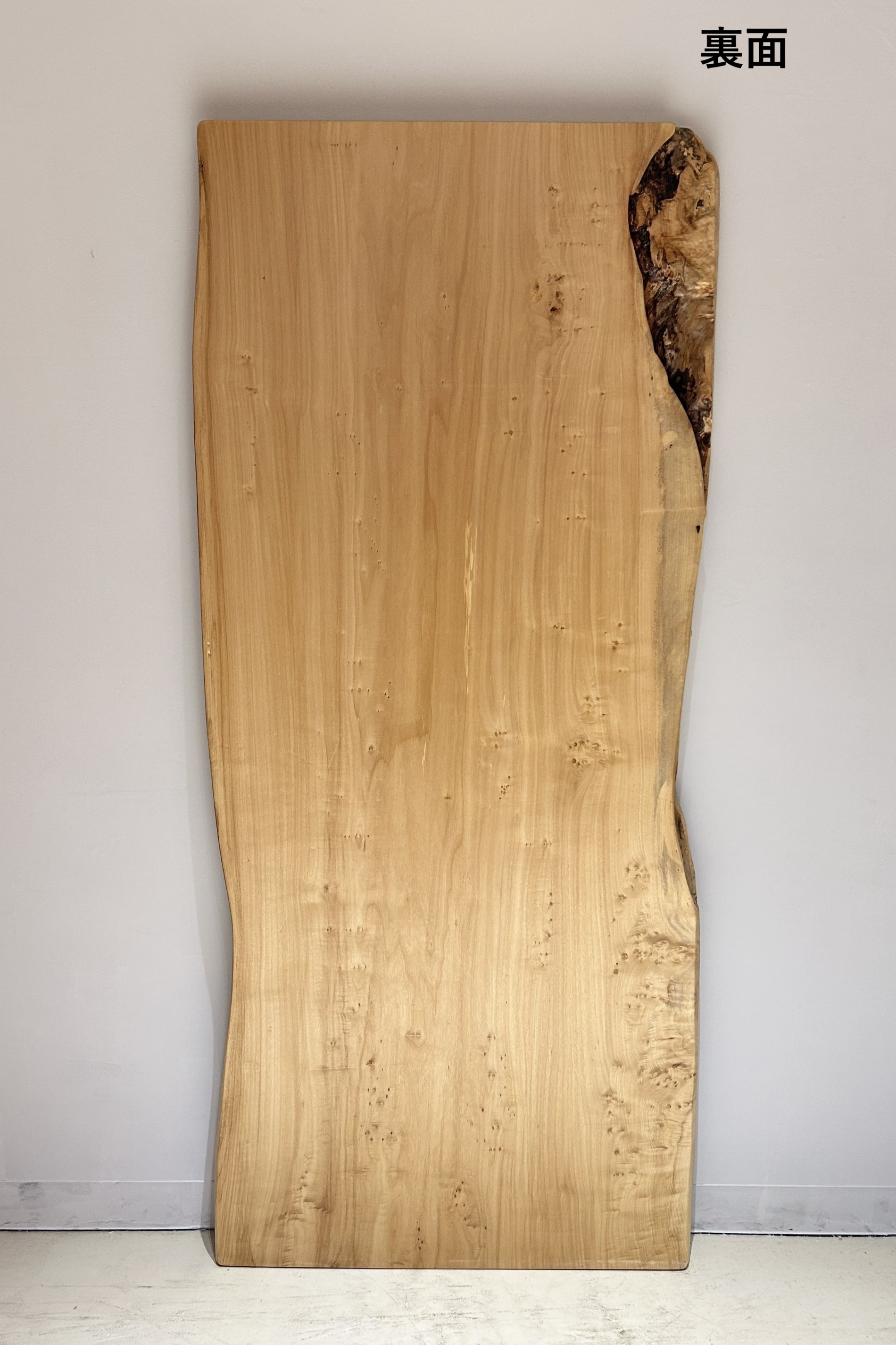 明るい木肌でコブ杢のある光沢の綺麗なポプラ材一枚板です。
