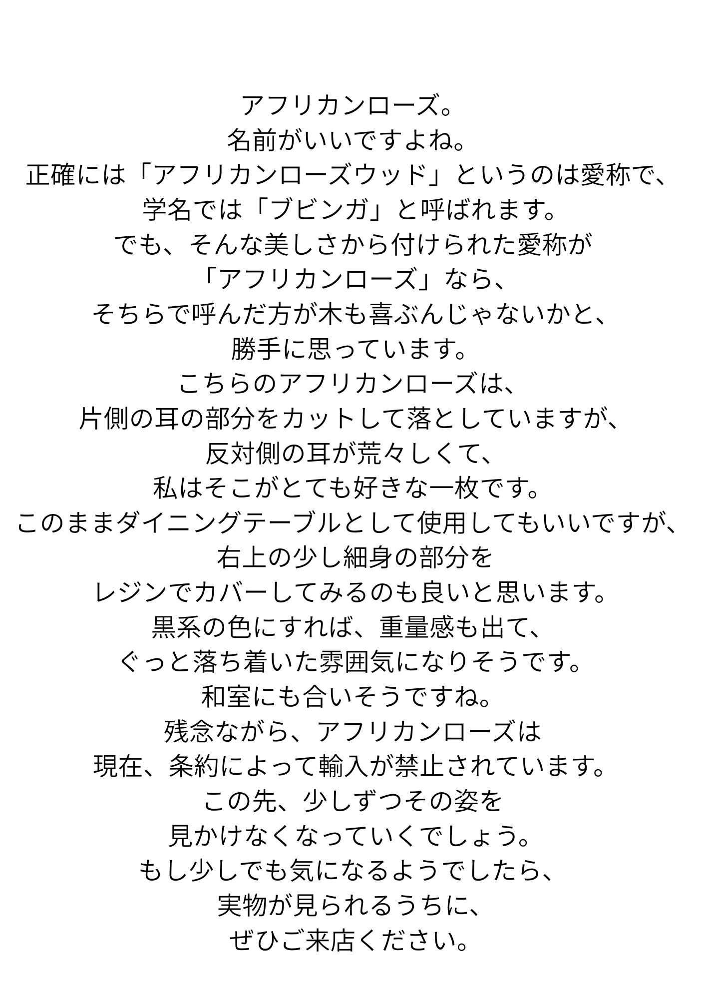 ホーム > 商品カテゴリ一覧 > 店舗別・取扱商品 > 祭り屋 東五軒町店 > 一枚板 アフリカンローズ材 テーブル用天板 2085×700〜1090 mm