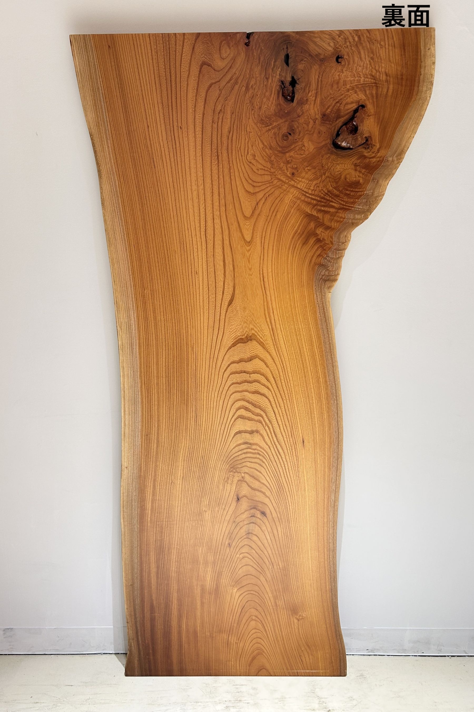 躍動感のある木目の流れで味わいあふれる欅材一枚板です。