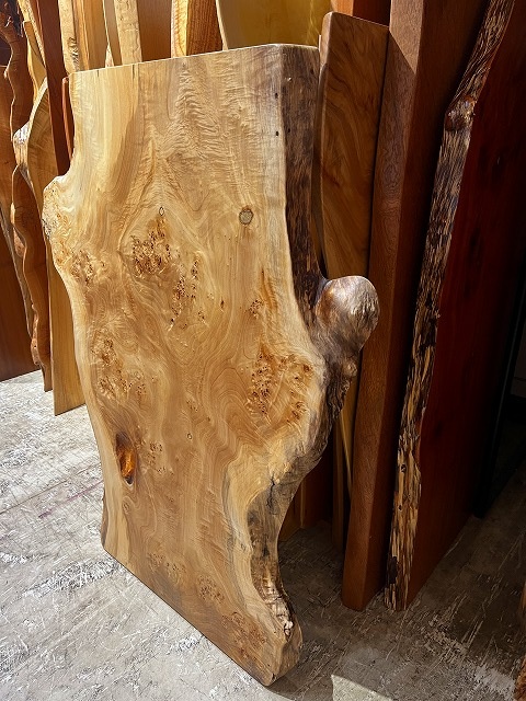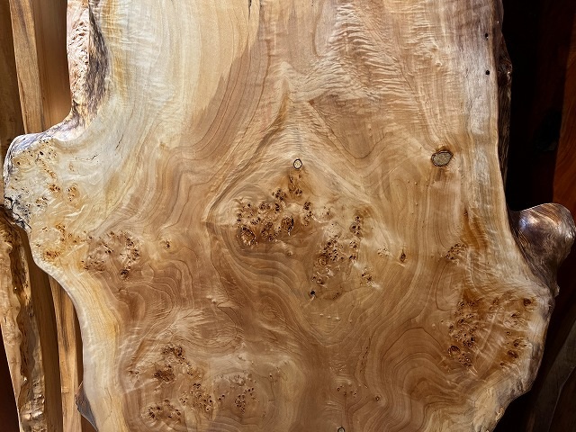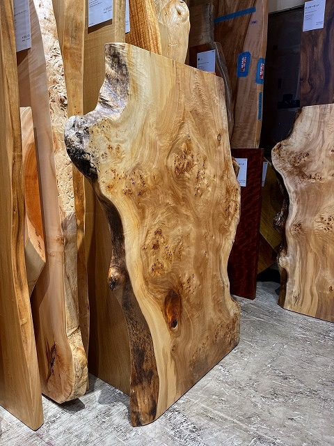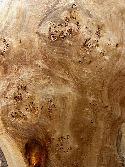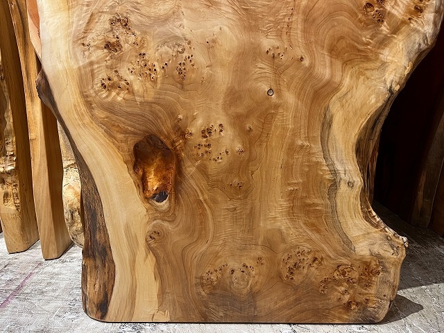 明るい木肌でコブ杢のある光沢の綺麗なポプラ材一枚板です。