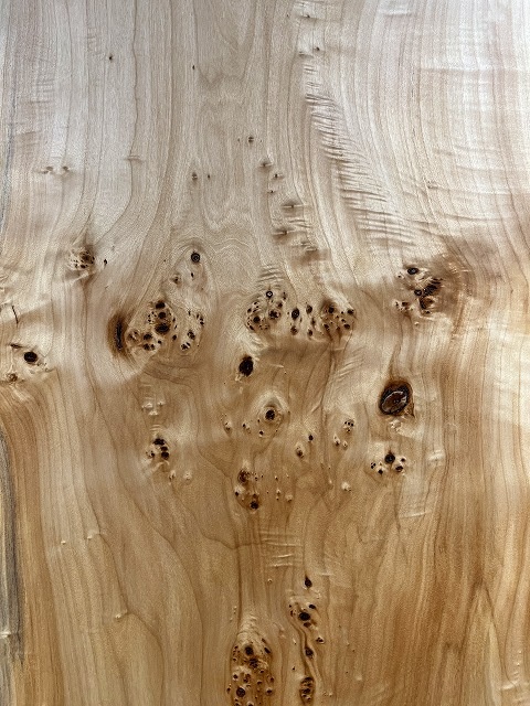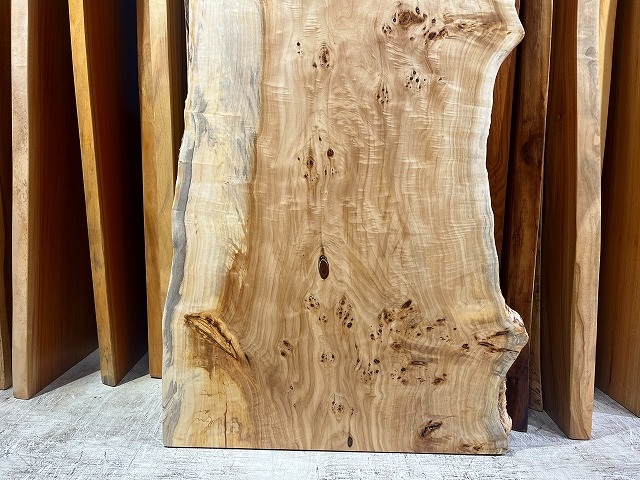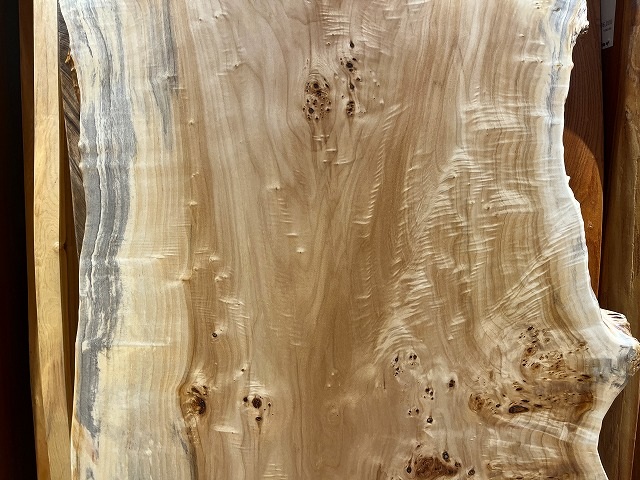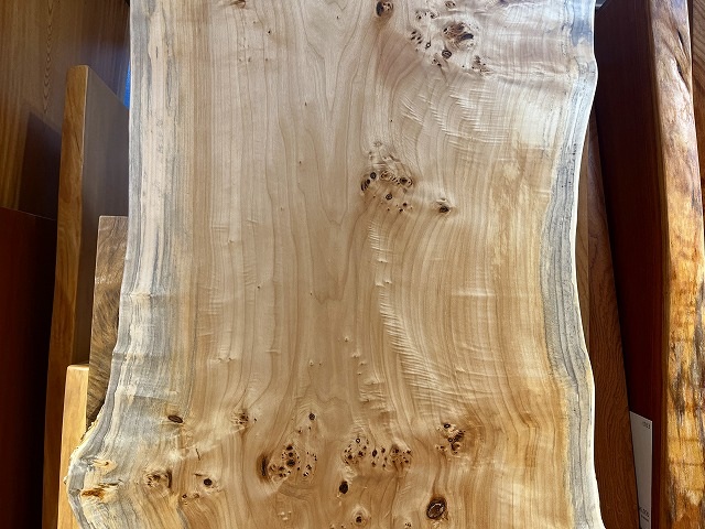 明るい木肌でコブ杢のある光沢の綺麗なポプラ材一枚板です。