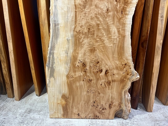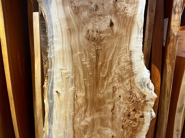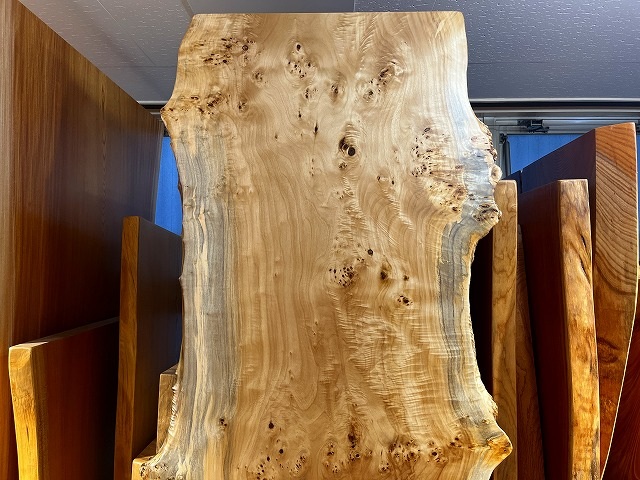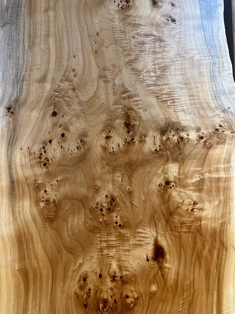 明るい木肌でコブ杢のある光沢の綺麗なポプラ材一枚板です。