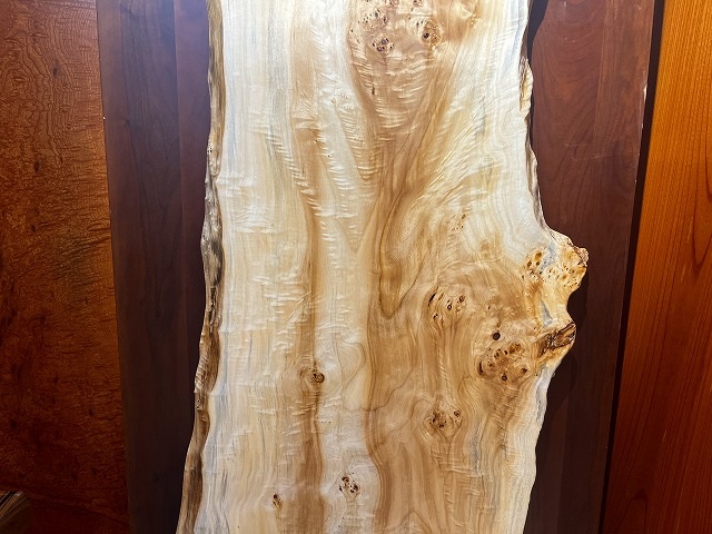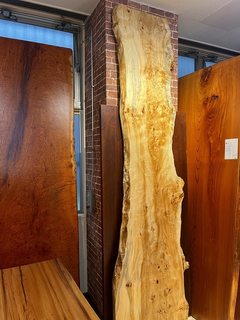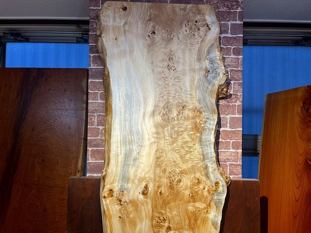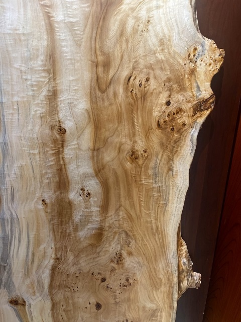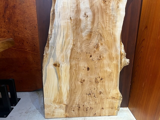 明るい木肌でコブ杢のある光沢の綺麗なポプラ材一枚板です。