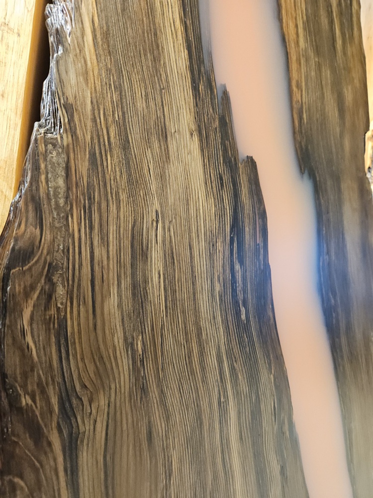 ホーム > 商品カテゴリ一覧 > 一枚板・無垢材テーブル天板 > 神代杉(ジンダイスギ)材 レジン仕上げテーブル用天板 1710×775~850~770 mm