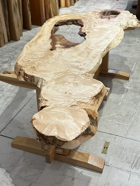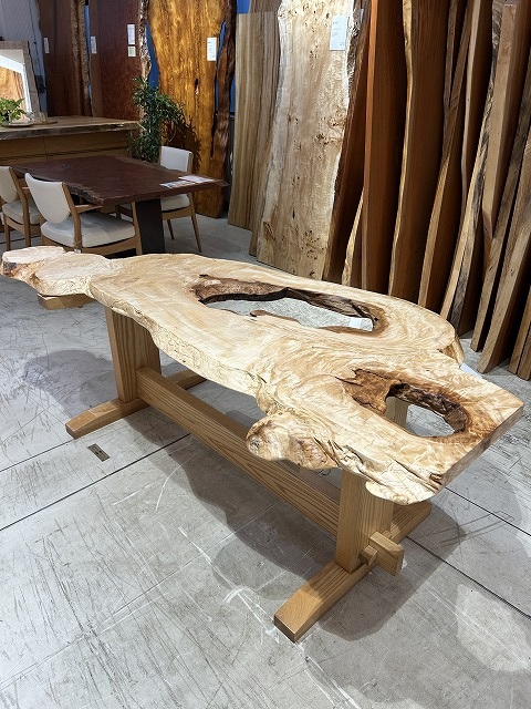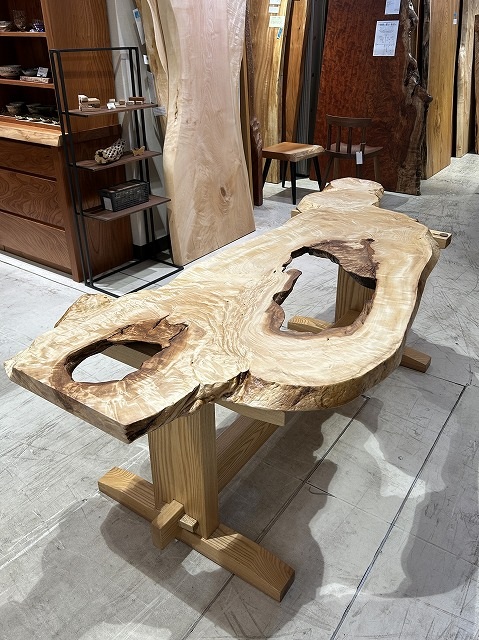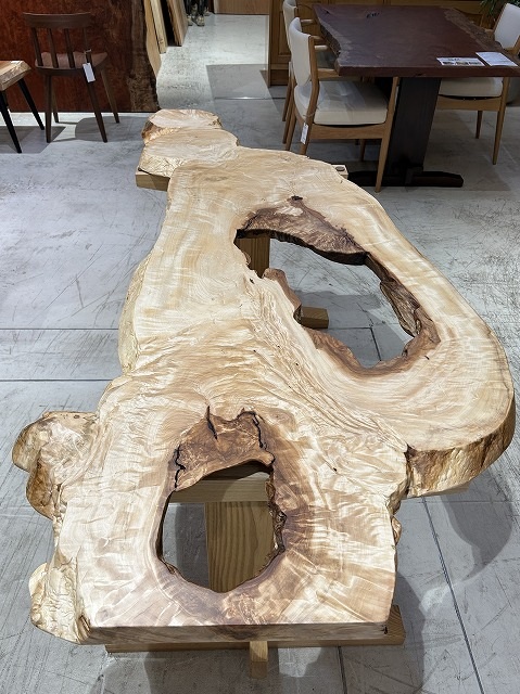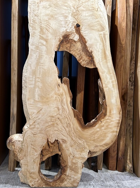 独特な形が唯一無二で魅力的な栃材一枚板です。