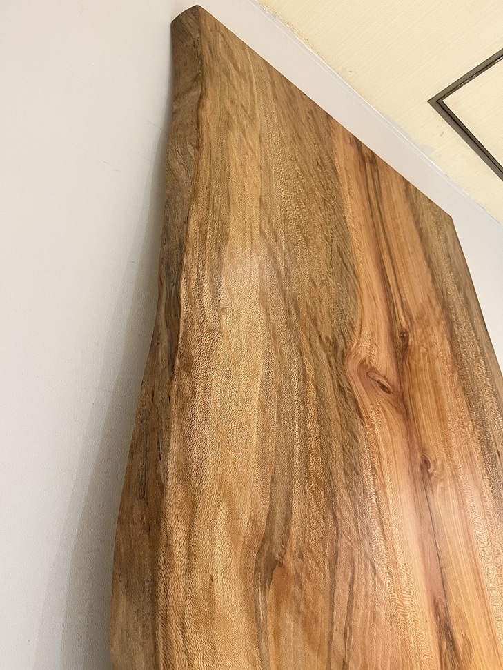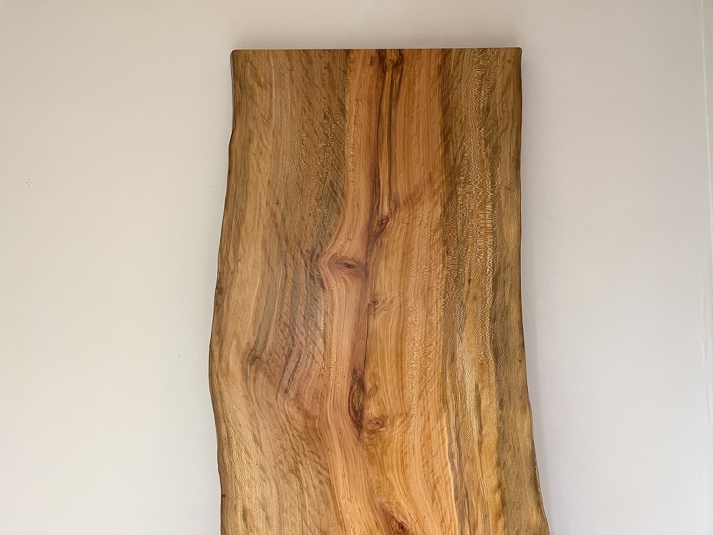 明るい木肌に様々な色目の木目が入り交じり一風変わった味わいがあります。