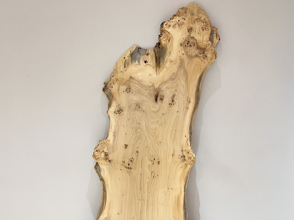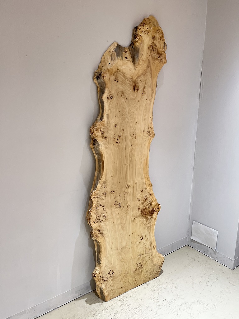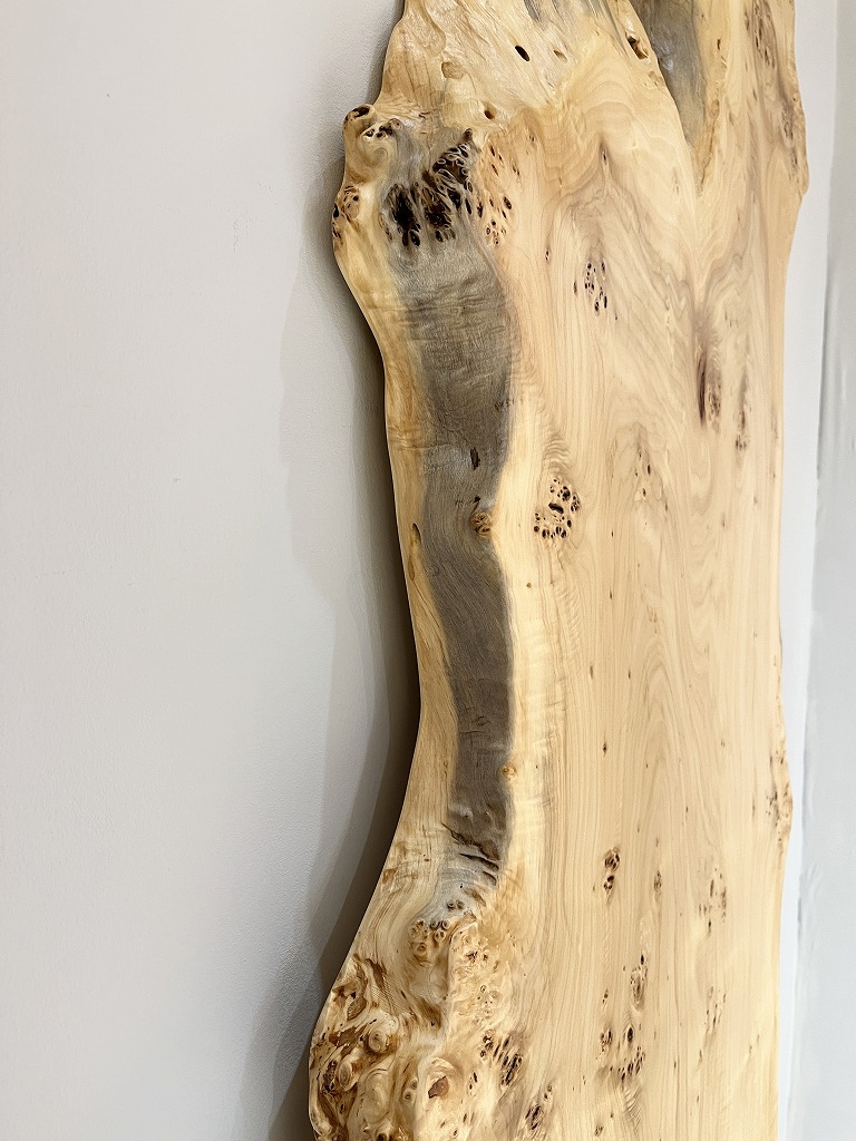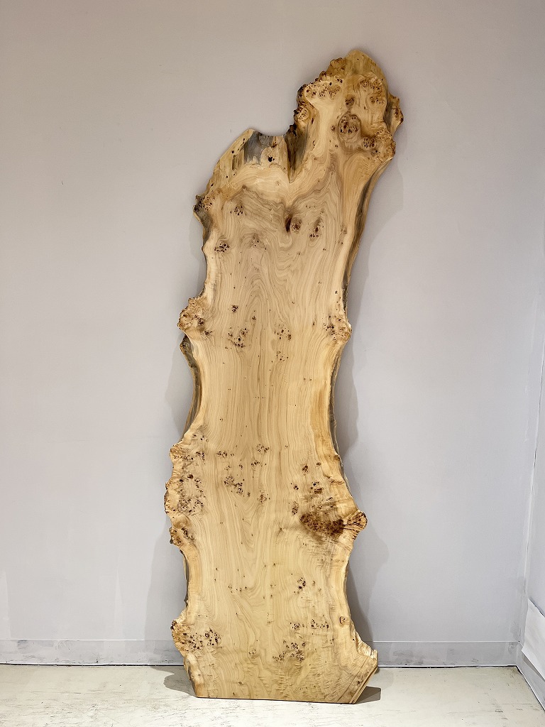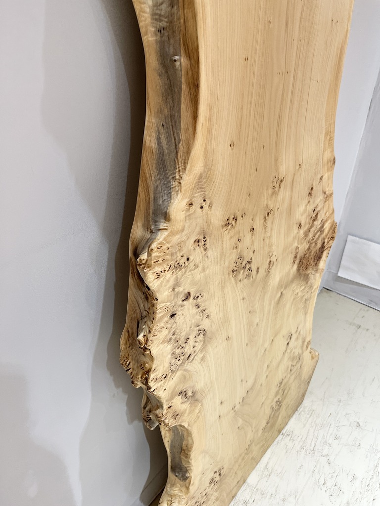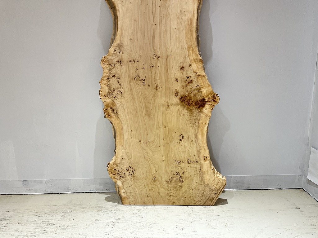 明るい木肌でコブ杢のある光沢の綺麗なポプラ材一枚板です。