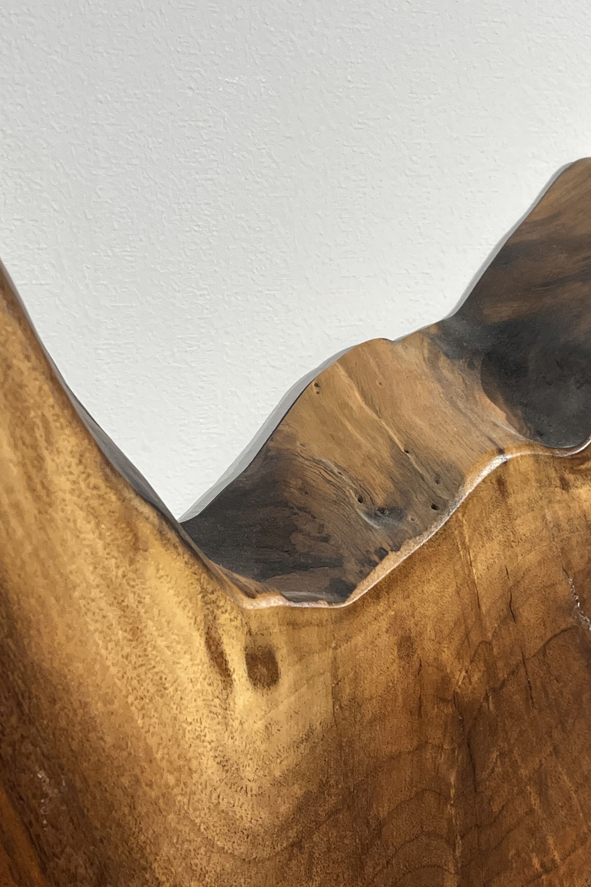 【材 質】欅(けやき)材 一枚板 テーブル用天板 セール 【サイズ】幅 1820 mm × 奥行 940 mm 〜 760 mm × 厚 57 mm 【型 番】t969 【価 格】225,000円(税別) ※脚製作費/3万から8万円程度。デザイン・天板の大きさにより変わります。ご相談ください。