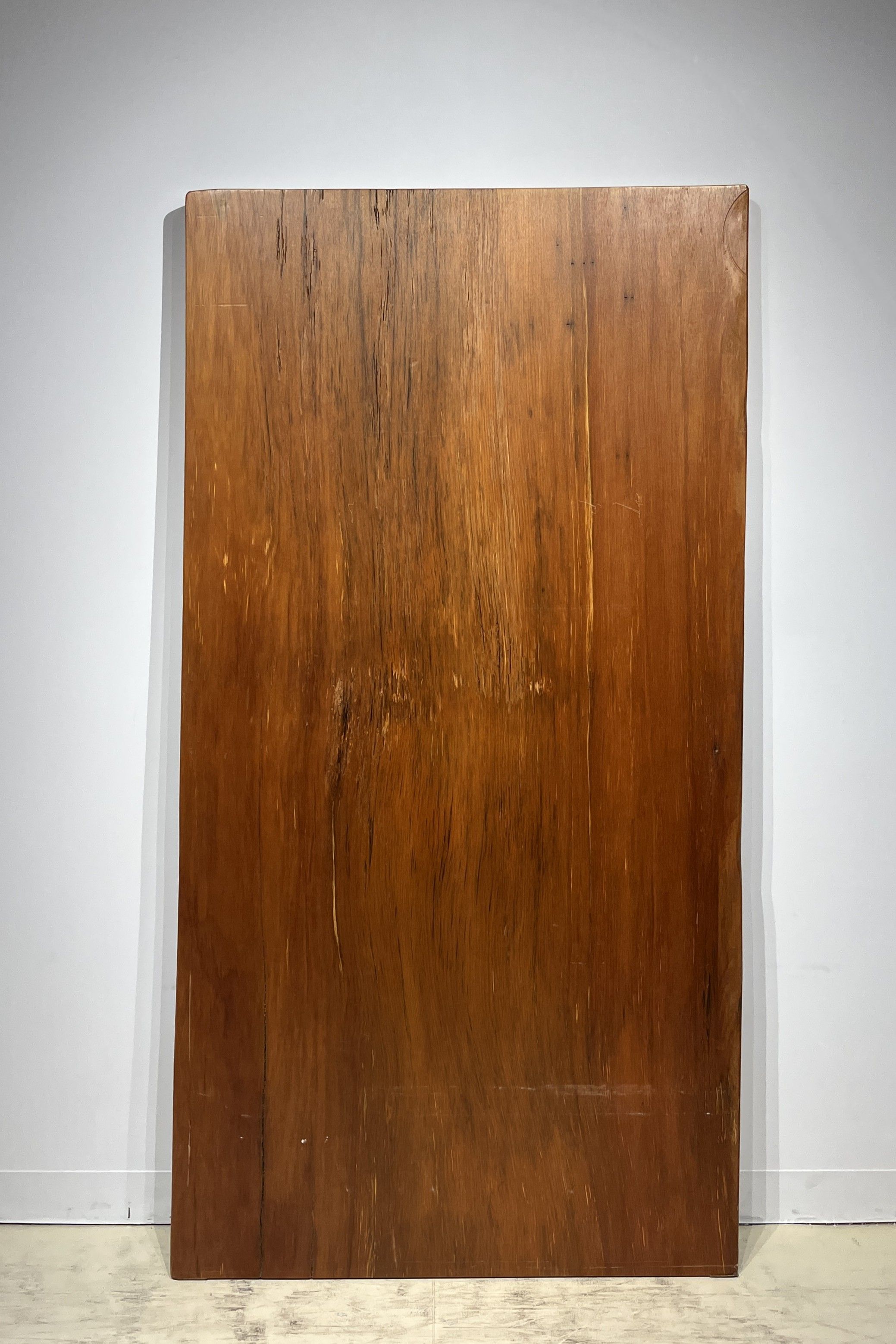 【材 質】欅(けやき)材 一枚板 テーブル用天板 セール 【サイズ】幅 1820 mm × 奥行 940 mm 〜 760 mm × 厚 57 mm 【型 番】t969 【価 格】225,000円(税別) ※脚製作費/3万から8万円程度。デザイン・天板の大きさにより変わります。ご相談ください。