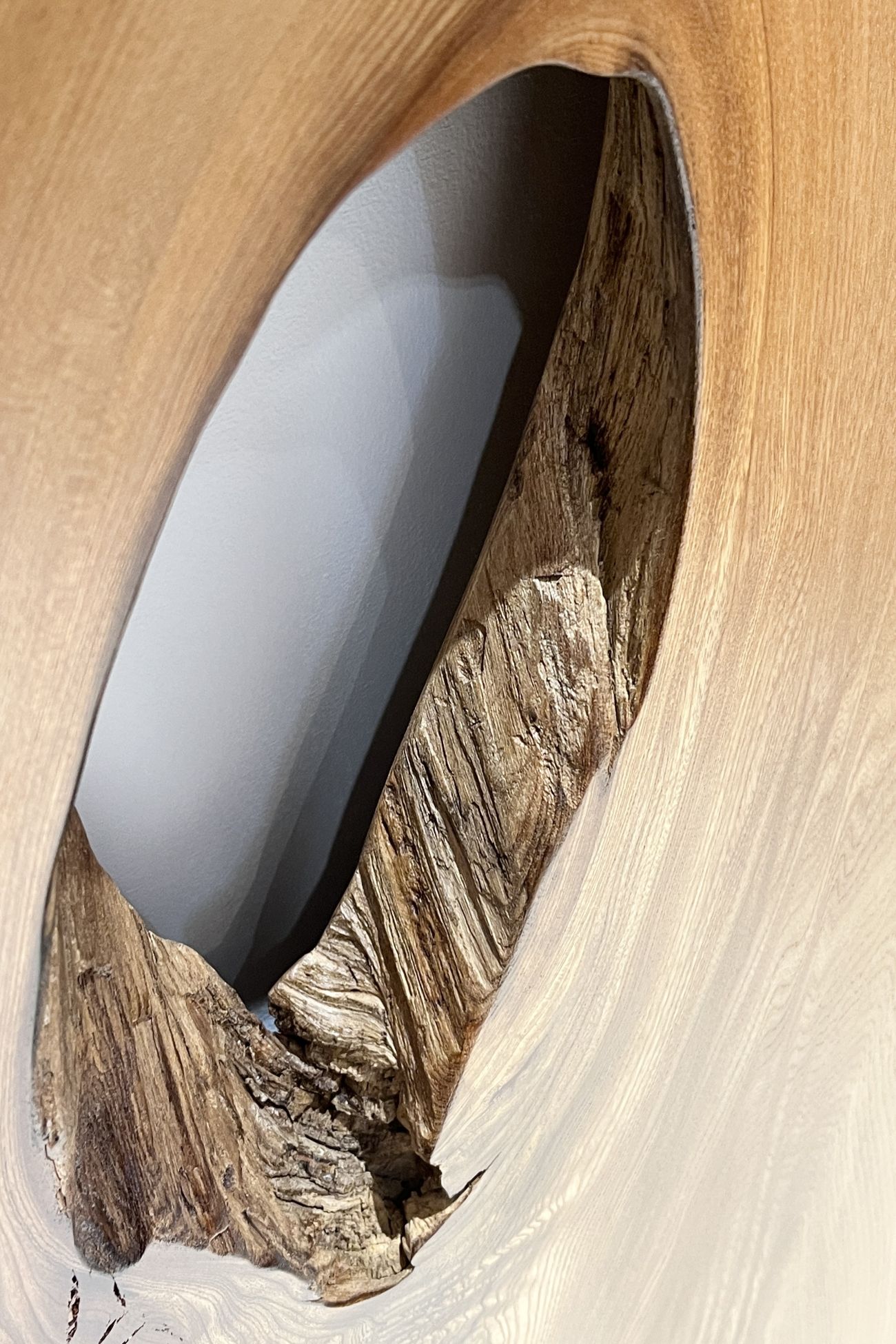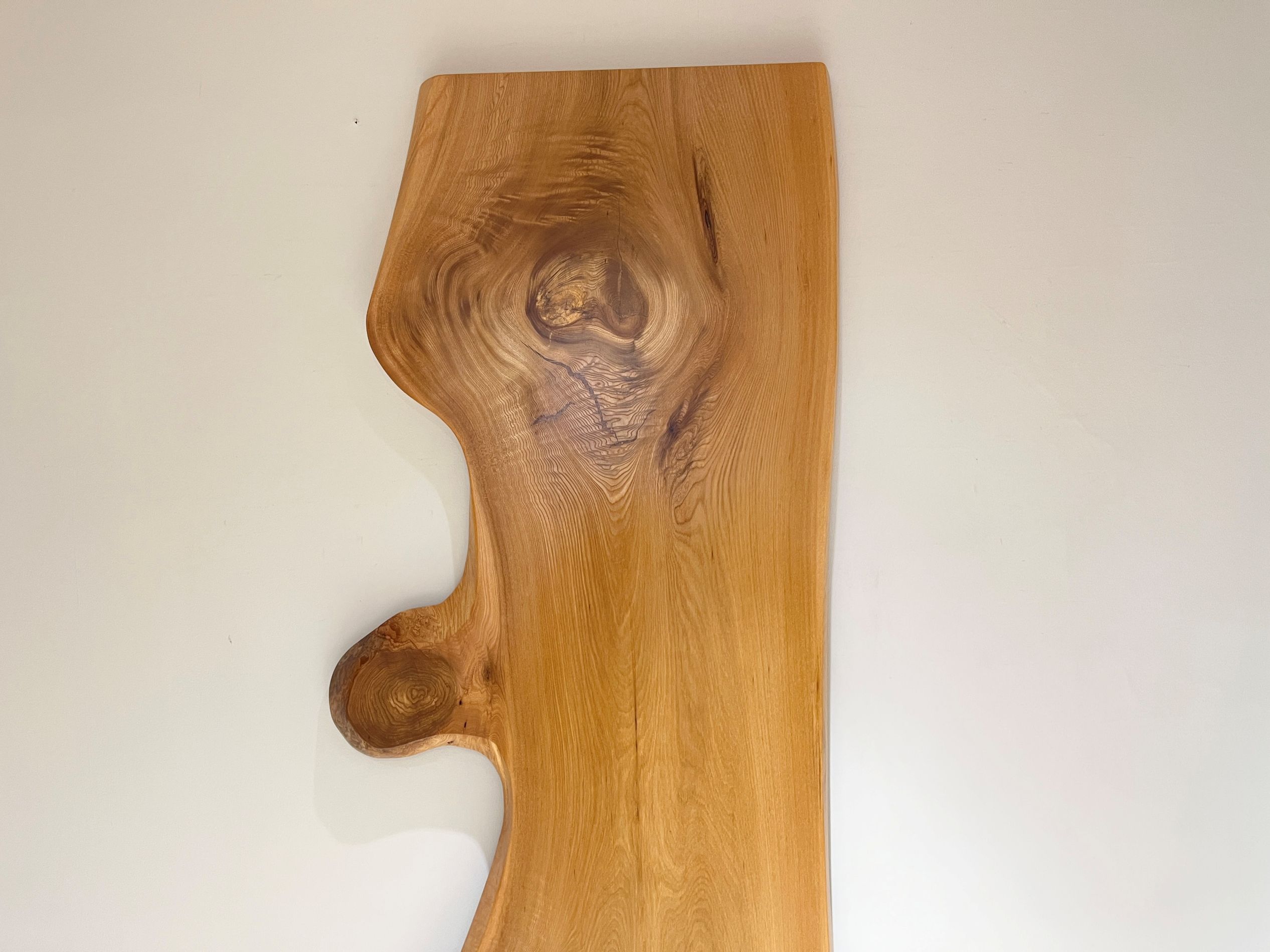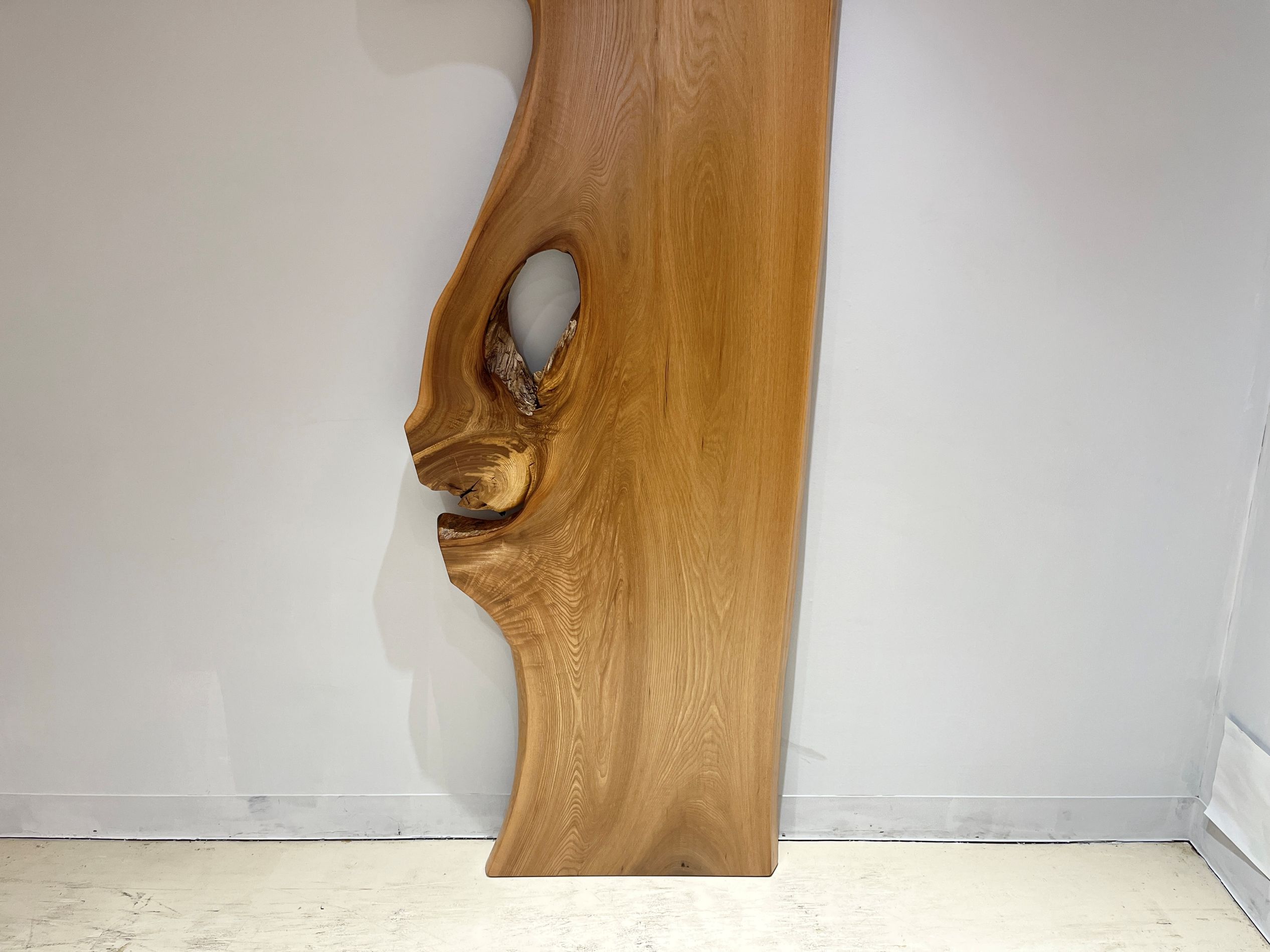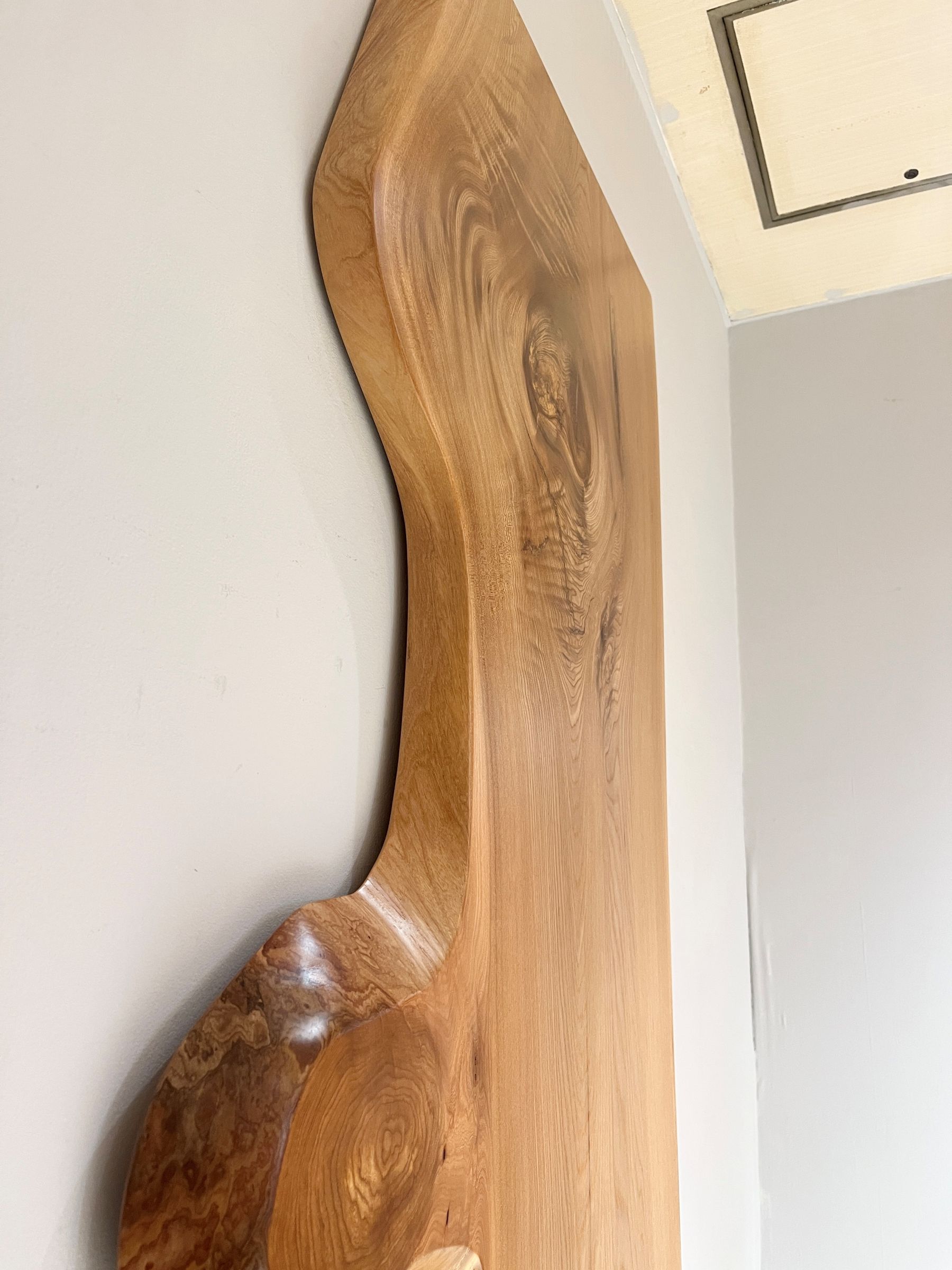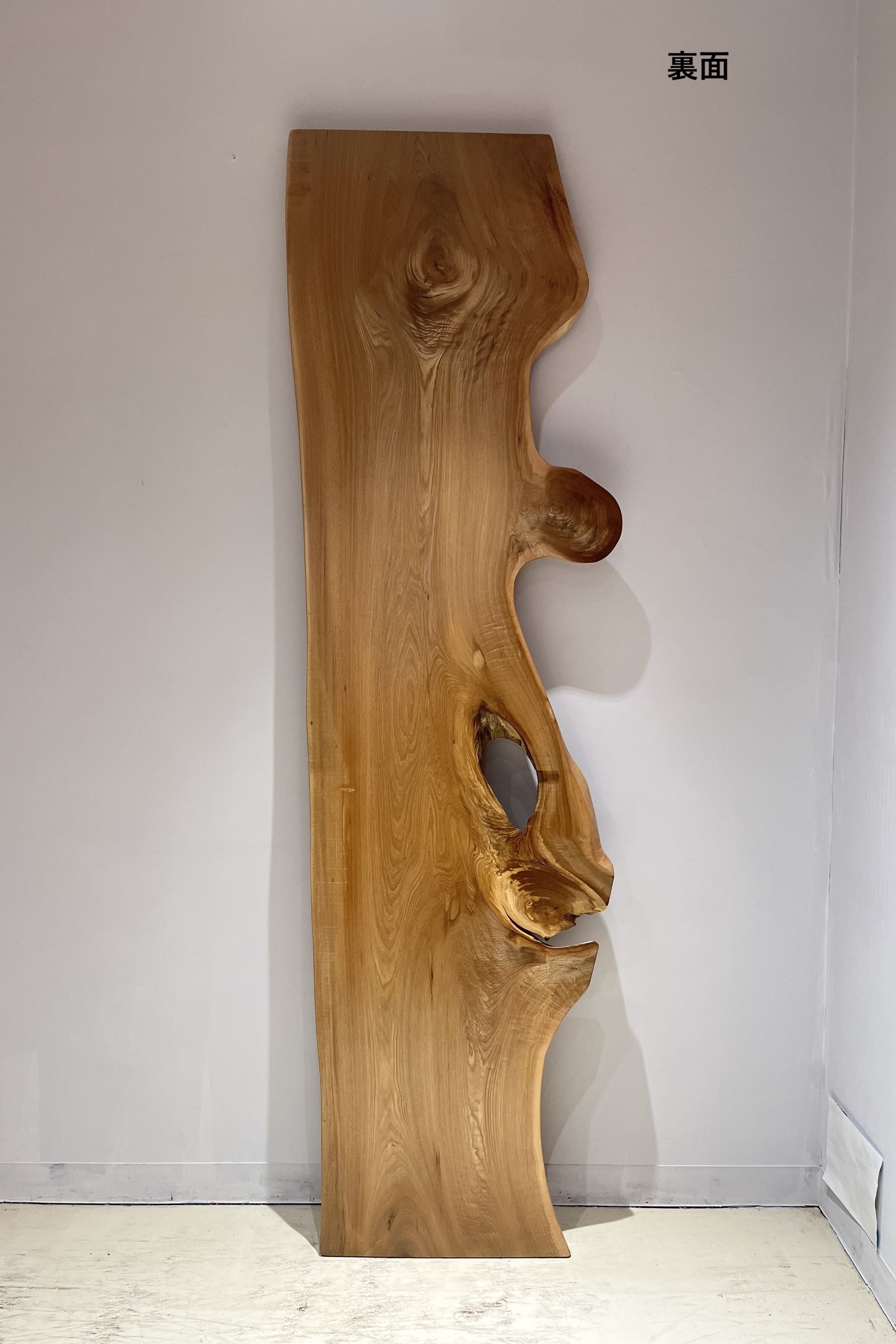 明るい色合いで木目の流れがきれいなニレ材一枚板です。