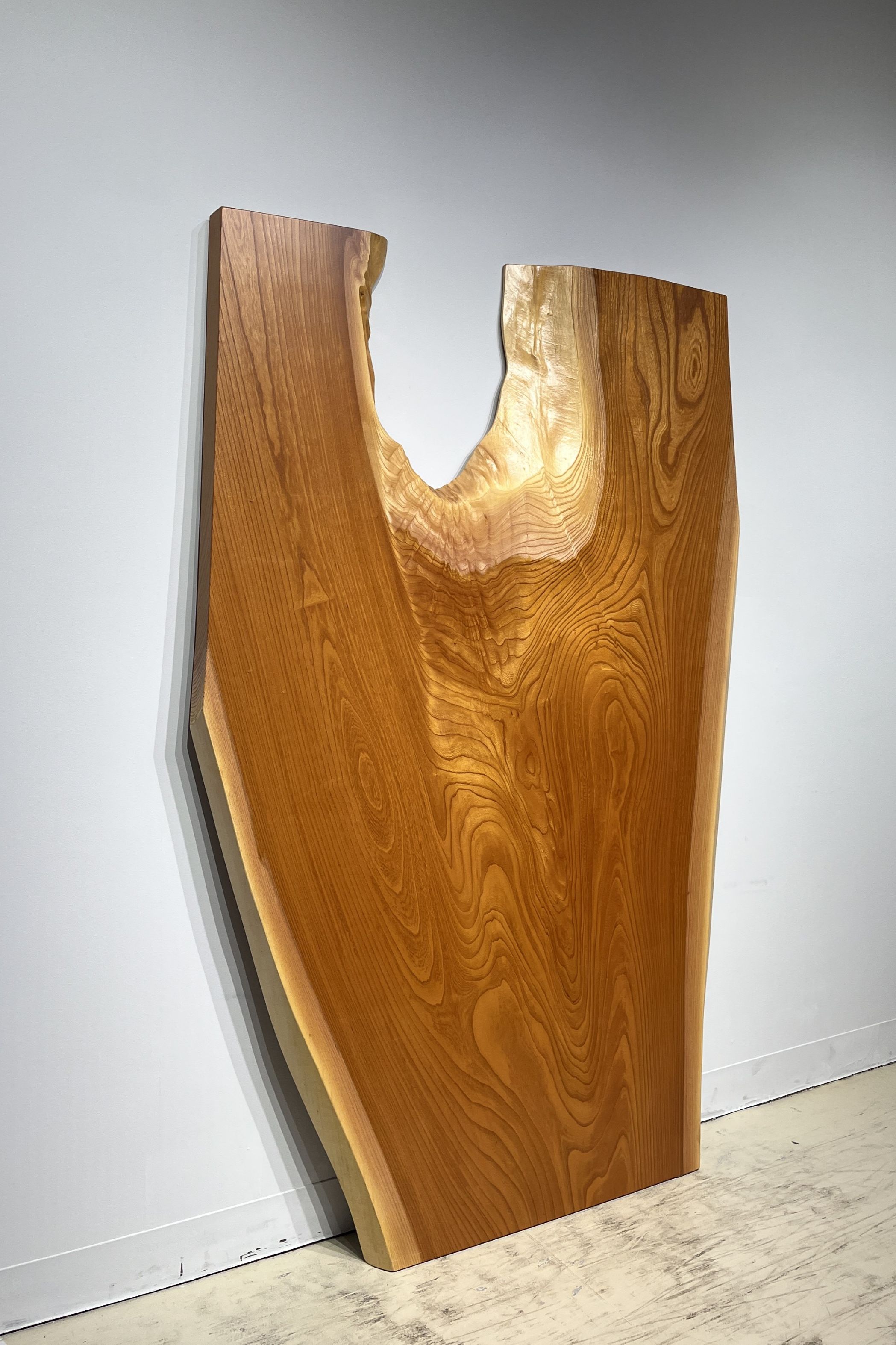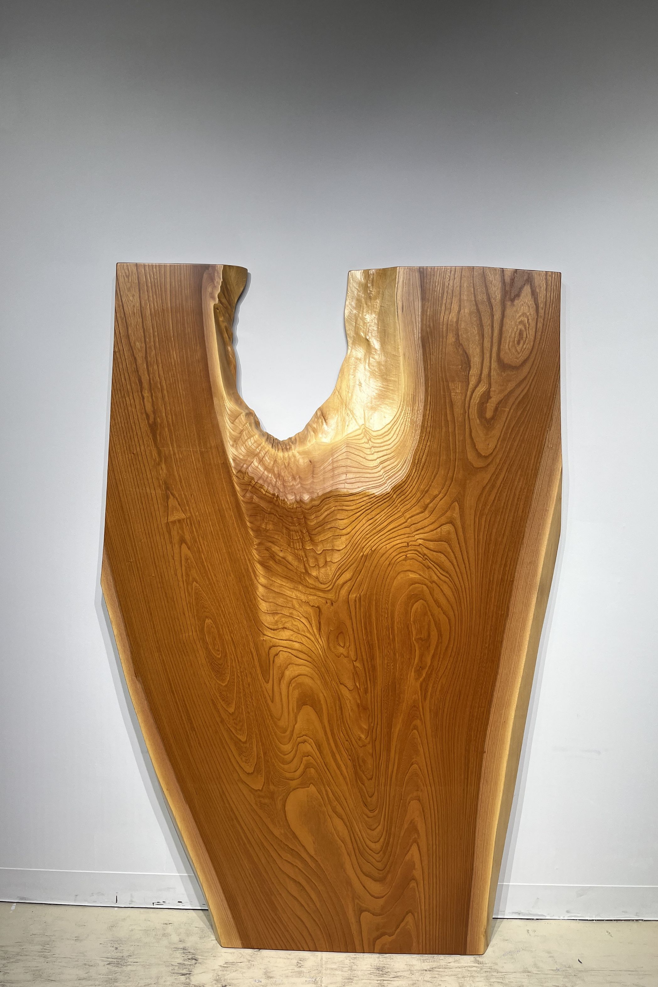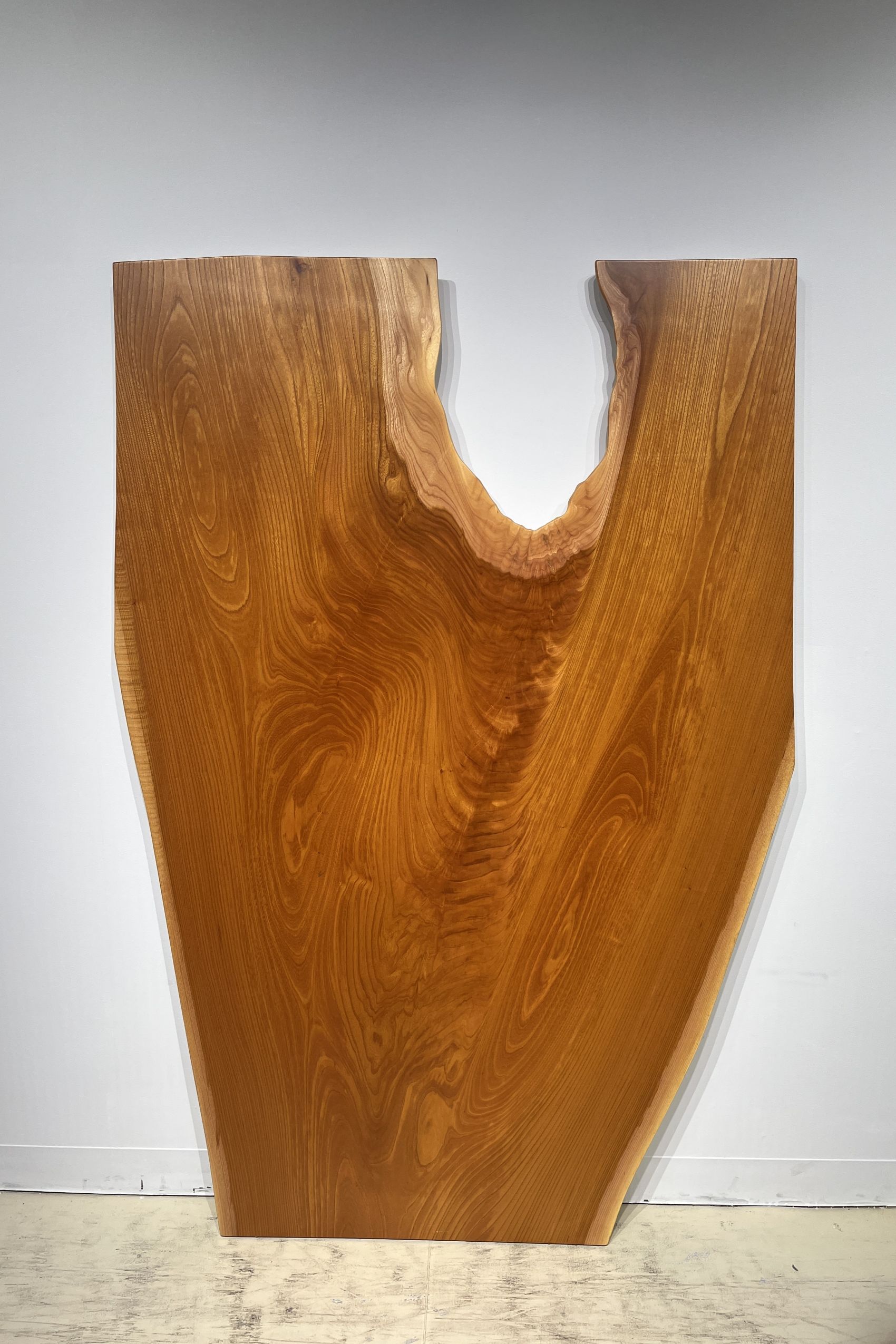 【材 質】欅(けやき)材 一枚板 テーブル用天板 セール 【サイズ】幅 1820 mm × 奥行 940 mm 〜 760 mm × 厚 57 mm 【型 番】t969 【価 格】225,000円(税別) ※脚製作費/3万から8万円程度。デザイン・天板の大きさにより変わります。ご相談ください。