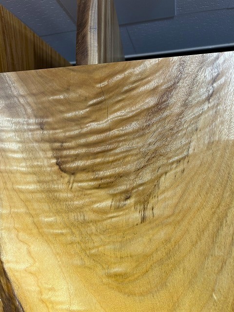 【材 質】楠(クス)材 一枚板 テーブル用天板 【サイズ】幅 1800mm×奥行900〜600mm×厚60mm 【型 番】E159 【価 格】280,000円(税別) ※脚代別 ※脚制作費 3万から5万程度平均 デザイン・天板の大きさにより変わります。ご相談下さい。