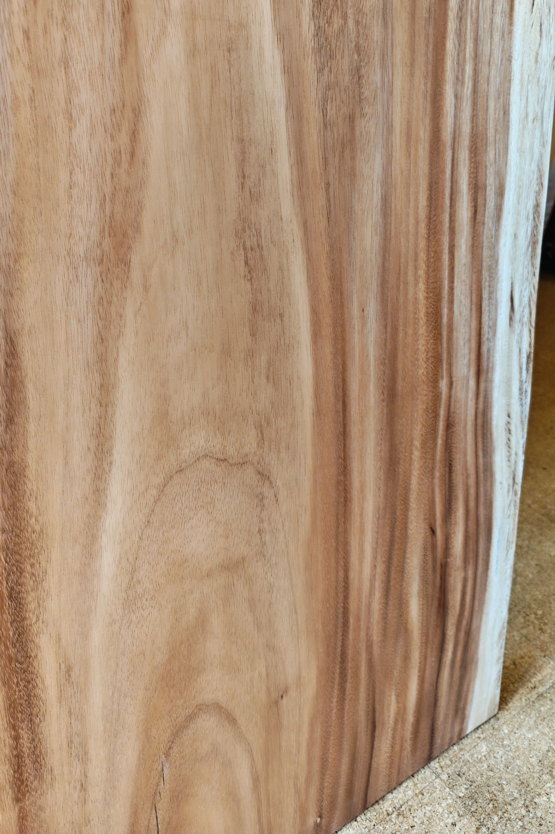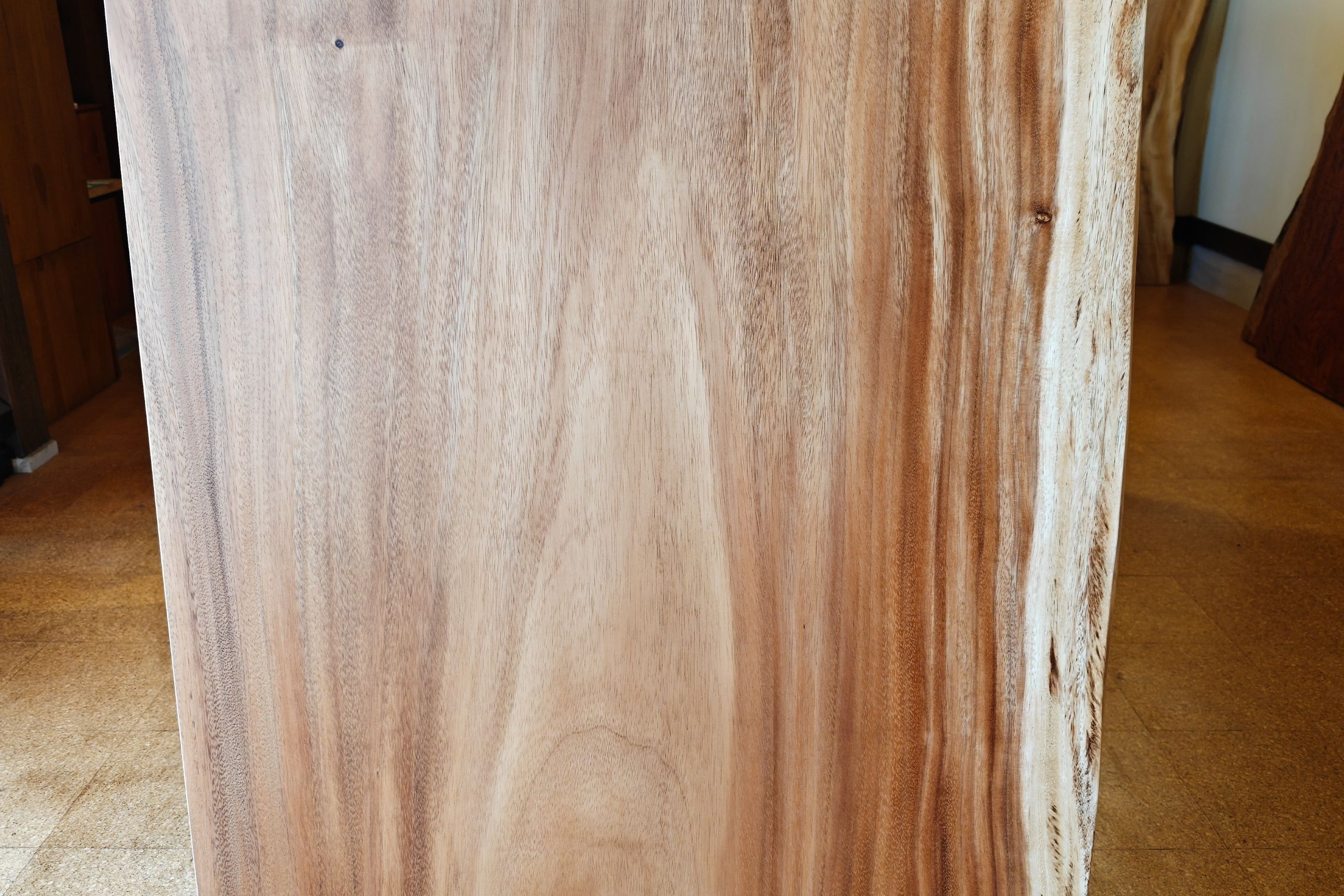 【材 質】モンキーポッド材 一枚板 テーブル用天板 【サイズ】幅 1685 mm × 奥行 750 mm 〜 850 mm × 厚 60 mm 【型 番】E631 【価 格】275,000円(税別) ※脚製作費/3万から8万円程度。デザイン・天板の大きさにより変わります。ご相談ください。