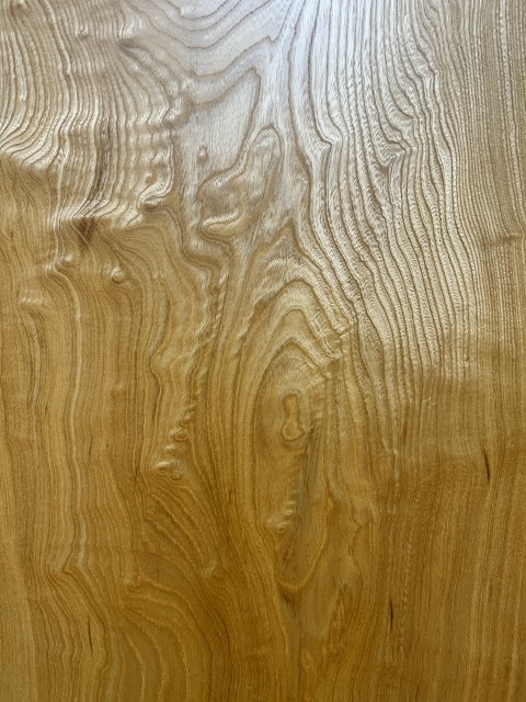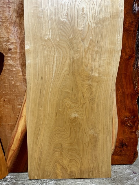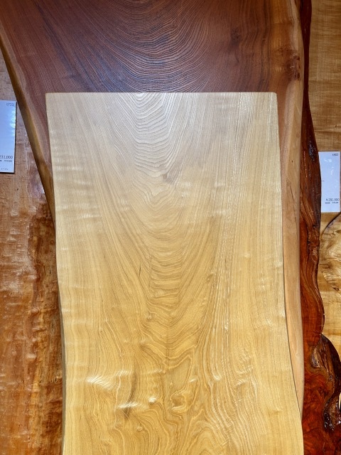 細長めですが全体的にはっきりした木目とクリミな色合いがきれいな一枚板です。
