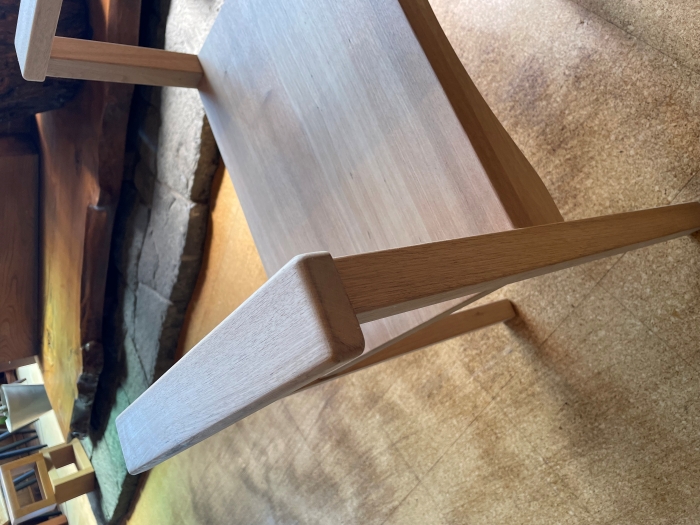 【材 質】欅(けやき)材 一枚板 テーブル用天板 セール 【サイズ】幅 1820 mm × 奥行 940 mm 〜 760 mm × 厚 57 mm 【型 番】t969 【価 格】225,000円(税別) ※脚製作費/3万から8万円程度。デザイン・天板の大きさにより変わります。ご相談ください。