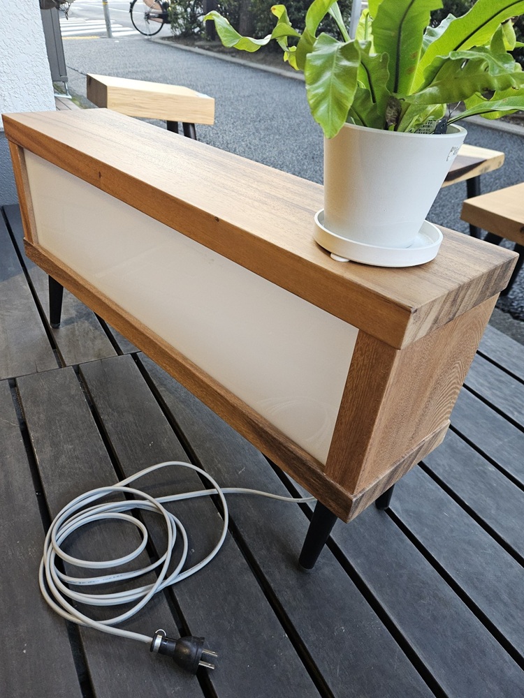 【サイズ】幅 800 mm × 奥行 200 mm × 高さ 400 mm 【型 番】tst511 【価 格】115,000円(税抜き) <送料別途>配送先によって異なりますのでお問い合わせください。 サインポストさんとの共同製作品 https://www.signpost-inc.com/ 看板なのに上に座れるスツールです。 上にディスプレイしても素敵です。 低めで両面光るサインのアプローチは、独特な雰囲気を出します。 展示品は「祭り屋」ロゴ入り・コード全長約3m デザインシートは別途お見積りです。 ※製作期間:約2か月 |