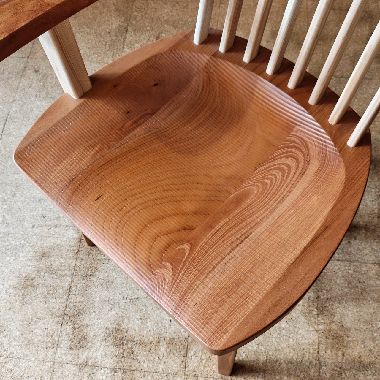 祭り屋製作のダイニングチェアがございますが、 こちらはその欅材版となります。