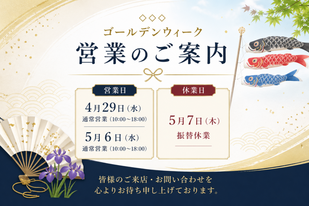 ゴールデンウィーク期間中の営業につきまして、下記の通りご案内申し上げます。