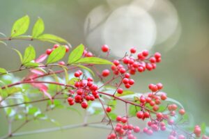ナンテン:「難を転じる」に通じる縁起木として有名。