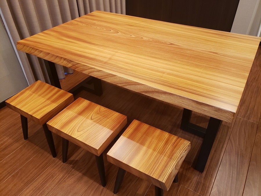 お気に入りの木目を生かしながら、暮らしに合ったテーブルに仕立てられるのも一枚板ならではの魅力です。