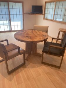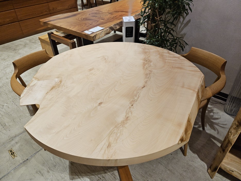 一枚板を円形や楕円形にカットすることで、天然木の表情を活かした特別なテーブルに。