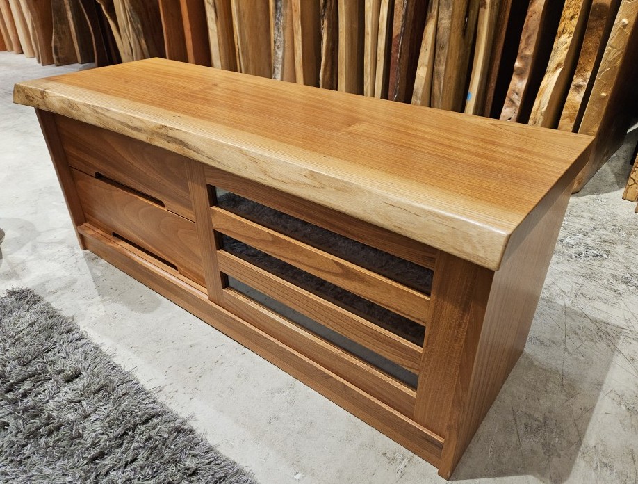 一枚板は、「テレビ台や棚などの収納家具」にもよく合います。