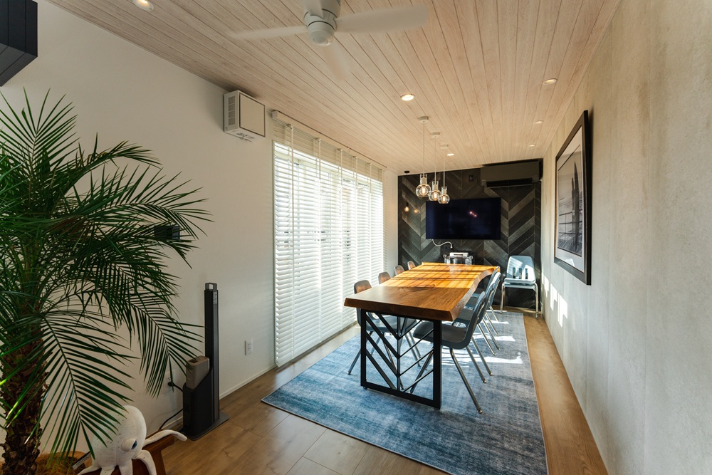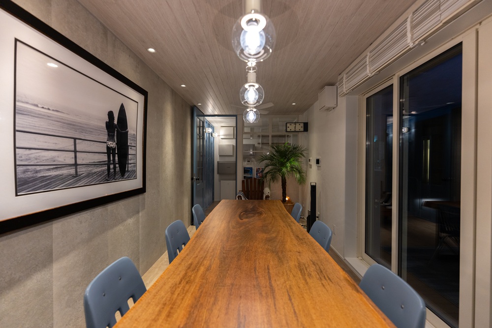 ご用意いただきました素敵な脚がマンゴー材天板を引き立てており、サイズ感や椅子、床材などとの調和もとても綺麗です。