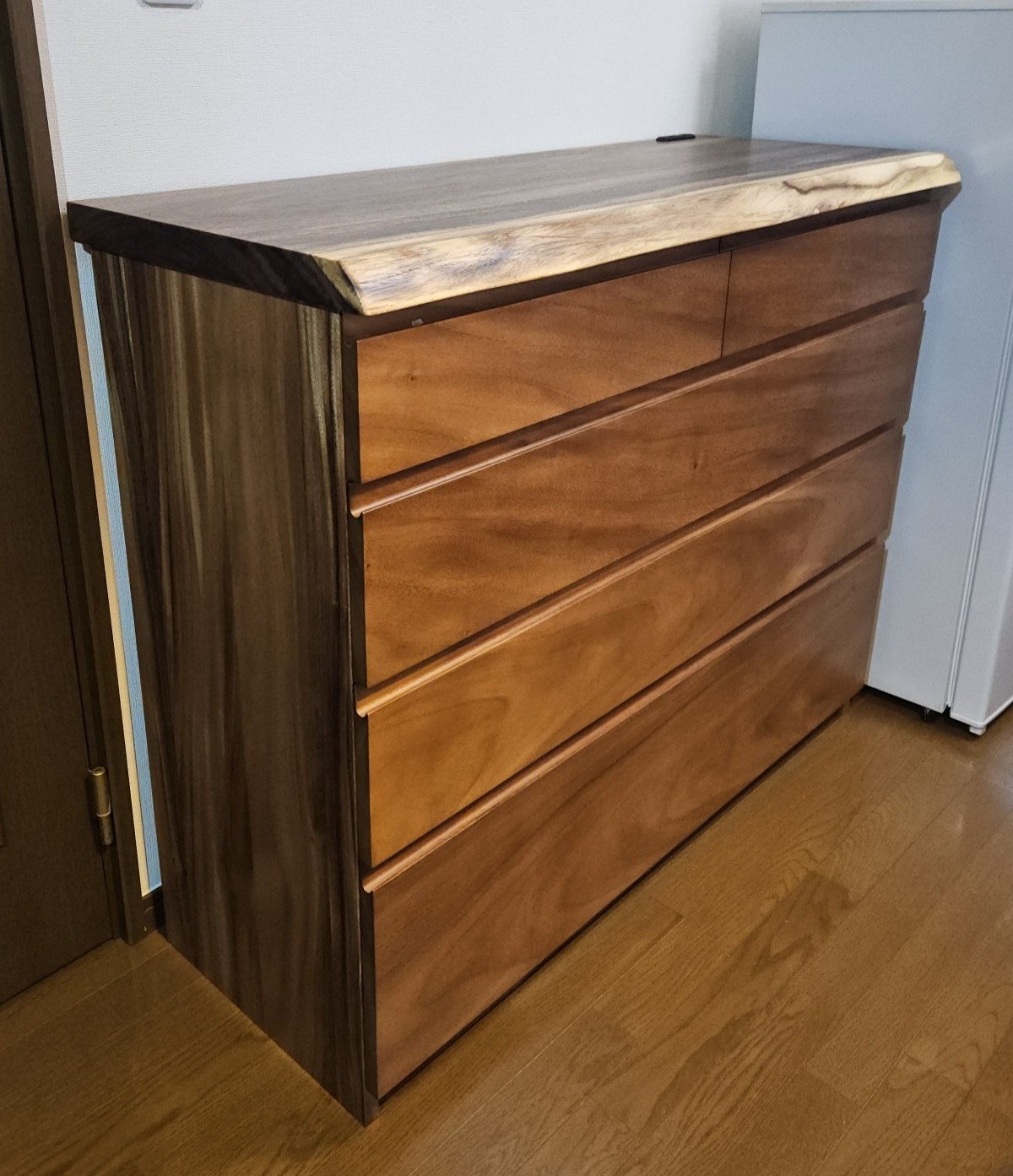 背の低い引き出しタイプの食器棚が欲しくて、サイズを指定して製作していただきました。