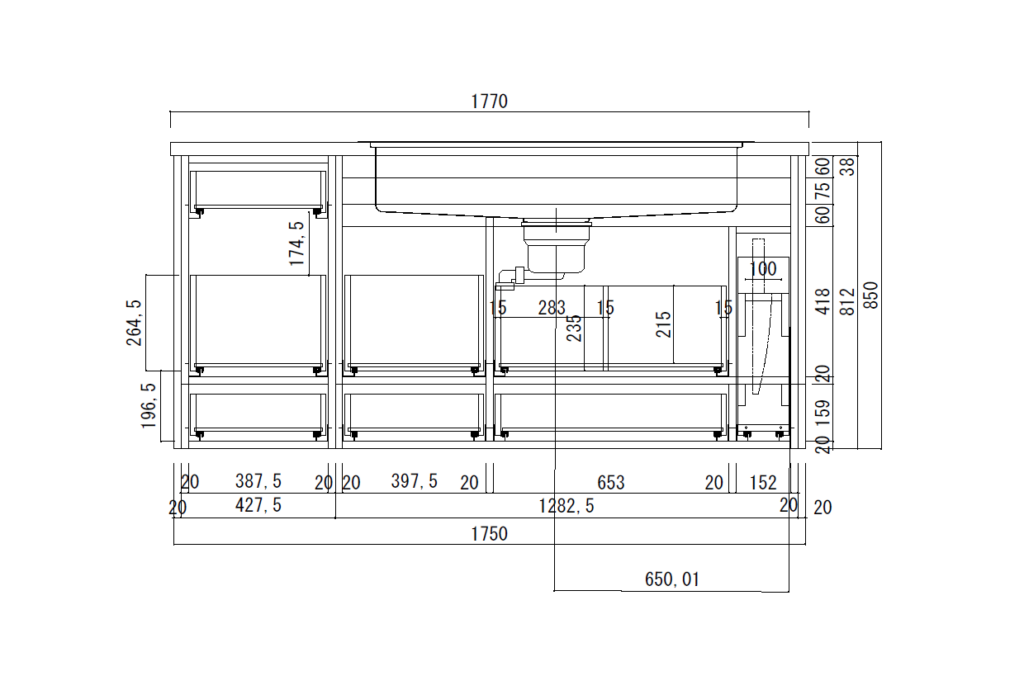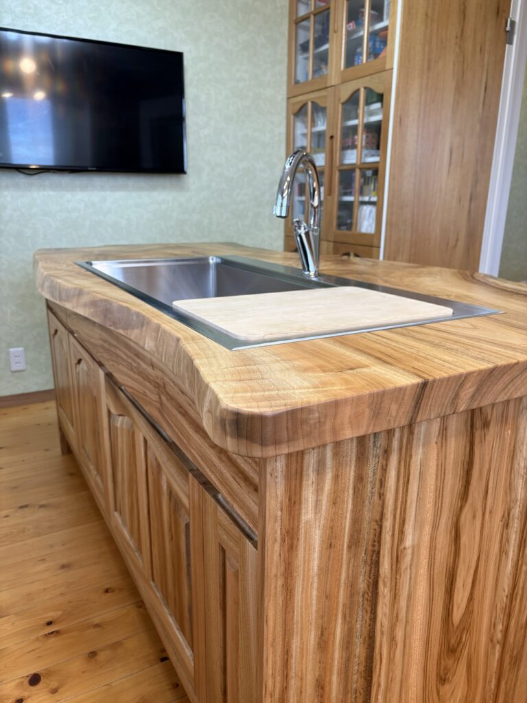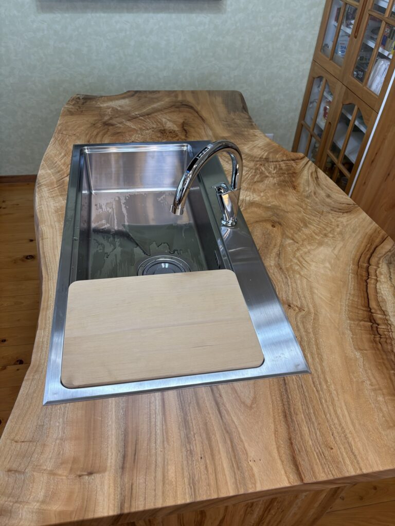 こだわりの包丁刺しと特注の大型シンクで魚釣りの好きなご主人が腕を振るえるキッチンになってます。
